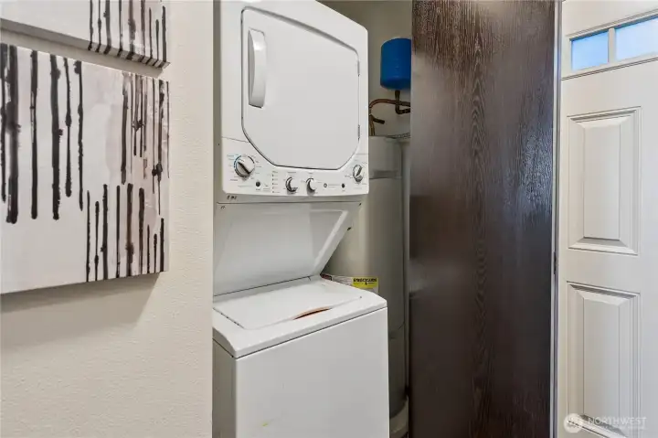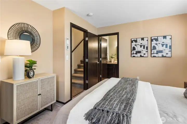 A rare Eastlake find that feels like a private retreat. Tucked along one of the neighborhood’s most coveted streets, this in-city cottage-style townhouse blends charm, function, and an unbeatable location. Inside, hardwood floors, designer tile, A/C and a bright, efficient layout make the home live larger than expected. The main-level bedroom is its own private escape with an en-suite bath, brand new stacked washer and dryer, and direct access to a fully fenced backyard with a treehouse feel, low-maintenance landscaping, and storage shed. Upstairs, the stylish kitchen features slab granite countertops, stainless steel appliances, a newer dishwasher, updated sink hardware, and a new garbage disposal, all flowing seamlessly into the living and dining areas, plus a convenient half bath. The top level offers flexible loft space ideal for a home office, guest space, or creative setup. Bathrooms have been thoughtfully refreshed with newer toilets. Finish the day on the rooftop deck with peekaboo Lake Union and city skyline views. Off-street parking with alley access adds everyday ease, while the location puts you just steps from Eastlake favorites, Lake Union, and quick access to South Lake Union, downtown, and UW. Pre-inspected for added peace of mind. No HOA!