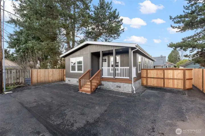 Brand new manufactured home condo offering stylish, low-maintenance living in a convenient location! This light-filled home features a spacious living room open to the beautiful kitchen with a large island, perfect for gathering and everyday living. A versatile flex room offers space for formal dining, a home office, hobby room, or whatever fits your lifestyle. The primary suite includes a walk-in closet and en suite bath, while two additional bedrooms and a full main bath provide plenty of room for guests or household needs. Enjoy the built-in covered porch, fully fenced yard with easy-care landscaping, and private parking with alley access for added convenience. Just minutes to I-5, restaurants, Centralia College, and downtown Centralia. Low $100/month condo dues include water and sewer!