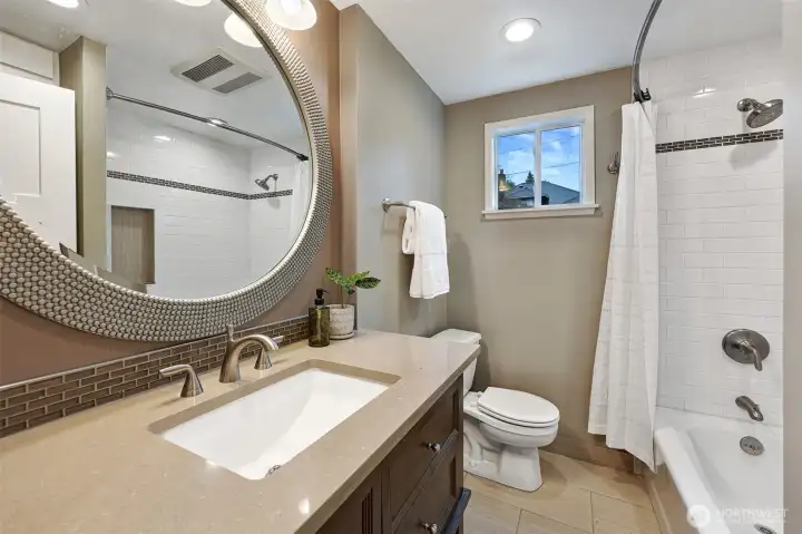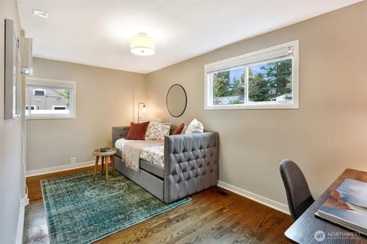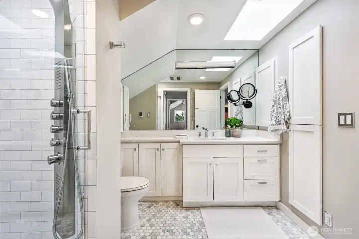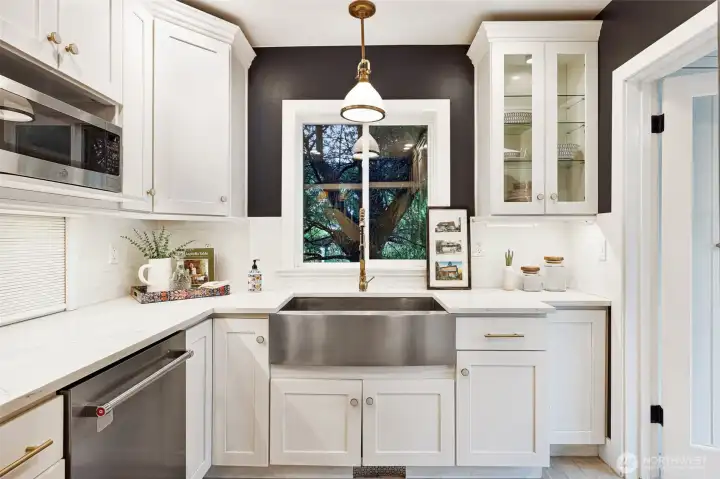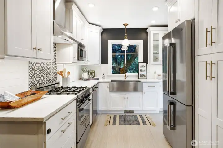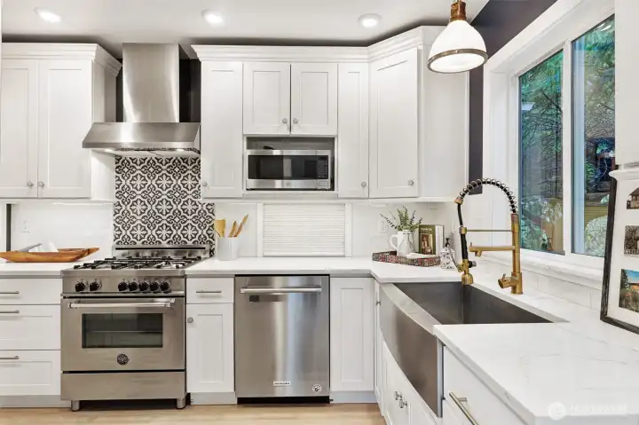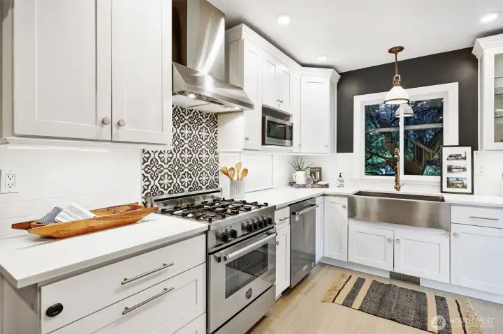 Tucked at the end of a quiet street in West Seattle’s Fauntleroy neighborhood, mornings begin with sunshine pouring through new custom windows and doors , coffee in a beautifully updated chef’s kitchen with quartz countertops, shaker cabinetry and Bertazzoni appliances, followed by a quick 2-minute stroll to Gatewood Elementary, nearby parks and transit. Evenings are made for gathering—hosting holidays for a crowd or unwinding fireside in a living room designed to comfortably seat 12+ guests. The spacious primary retreat features a walk-in California closet and custom built-ins, with room to create your dream ensuite. Three bedrooms upstairs offer flexibility, with two additional bedrooms and a full bath on the main level, plus a finished basement with another bathroom and abundant storage in the basement. Summers unfold in the fully reimagined backyard: turf, flagstone patio, extended custom deck, hot tub, pergola, native plantings and ambient landscape lighting. Take in sunsets with peek-a-boo Sound views and minutes to Lowman beach, Lincoln park, Fauntleroy ferry or Alki. With extensive system upgrades, off-street parking and a warm, connected community, this home blends vintage charm with elevated, easy living.