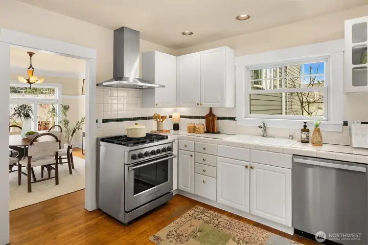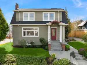Timeless 1921 Dutch Colonial Revival perched on a prized corner lot in Fremont, on a quiet street just south of Woodland Park Zoo. Rich with original character, this beautiful home showcases top-nail oak hardwood floors, crown moulding, vintage light fixtures, leaded-glass built-ins, and glass-pane French doors framing the traditional living and dining rooms. Sunlight pours through the home’s classic circular floor plan, while radiant heat and fresh interior paint provide warmth and move-in-ready appeal. Upstairs offers the coveted three-bedroom layout, including a spacious primary, while a bathroom on each floor adds everyday convenience. The lower-level rec room with Murphy bed provides exceptional flexibility as a guest suite, media room, or home office. The kitchen balances timeless charm with thoughtful updates, featuring a five-burner Fisher & Paykel gas range, Miele dishwasher, and bar seating. A private driveway, patio space, and professional landscaping extend the home’s livability outdoors. Perfectly positioned in the heart of Fremont with easy access to Phinney Ridge and Wallingford, this home offers a balance of neighborhood charm and city convenience. Moments from Green Lake, Lower Woodland Park, neighborhood cafes, acclaimed restaurants, and everyday conveniences, the setting feels peaceful while remaining close to the vibrant energy that makes Fremont so beloved. A truly beautiful home with an exceptional feel in one of Seattle’s most cherished neighborhoods.