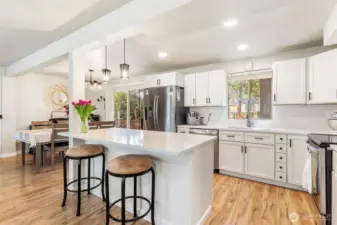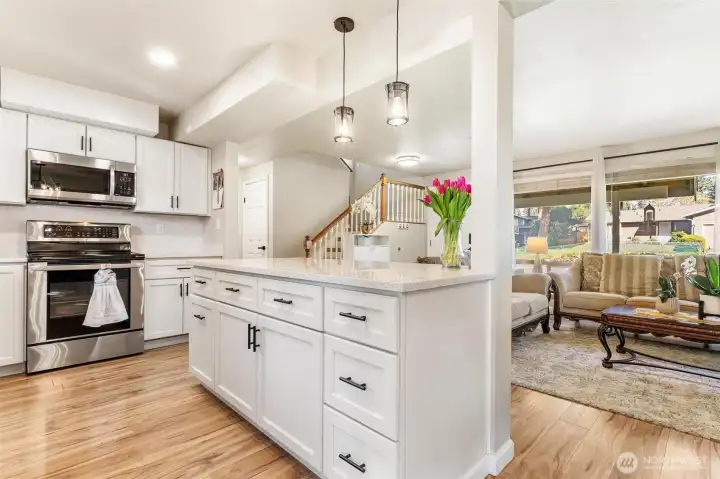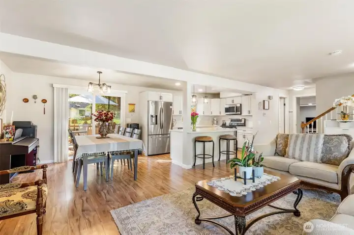 Nestled on a quiet cul-de-sac near Lake Sawyer, this beautifully updated home offers the perfect blend of comfort, style, and location. Enjoy open concept living filled with immense natural light, a cozy fireplace, and a seamless flow from the living room to the dining area and out to the back deck overlooking a lush backyard. The stunning kitchen features gleaming quartz countertops, stainless steel appliances, and modern finishes throughout. The seller has truly done it all with new flooring and thoughtful updates in every space, including refreshed bathrooms on both levels. A versatile lower-level bonus area with an updated bath and direct backyard access offers flexible living options for guests, work, or play. Ideally located just minutes from the Lake Sawyer boat launch, public parks, and the many amenities of Covington and Maple Valley, all within the highly sought-after and award-winning Tahoma School District.