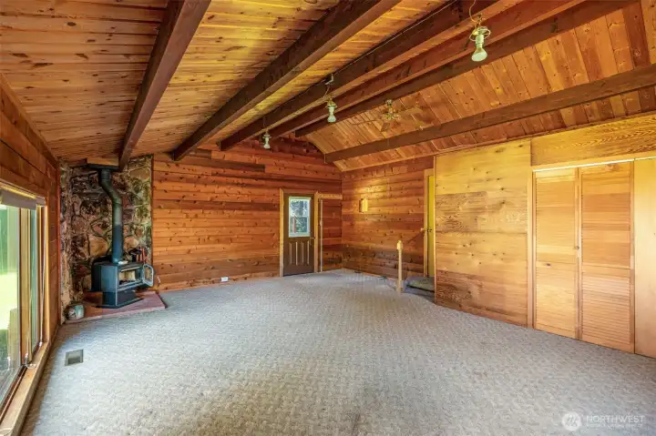 Stunning custom cedar home with expansive shop on a shy acre in the peaceful Offut Lake community. Soaring ceilings with exposed beams and wood paneling are illuminated by the sprawling wall of windows upon entry. Beautifully redesigned kitchen built with entertaining in mind features large center island with wrap around seating, SS appliances and tile backsplash. Primary bedroom loft with ¾ bath and walk in closet. Bonus room in the back of the home with wood stove can be used as a second living area, guest room or as the space needed to satisfy your lifestyle needs. Heated 52’X24’ shop with workbenches perfect for the woodworker, car collector or any hobbyist that needs more space. Shop built with 2 sets of garage doors offers the flexibility to separate the space into different areas. Stretch out in the fully fenced level backyard and let your garden dreams come to fruition this spring! Recent updates include full kitchen remodel, net metered solar energy system, laminate flooring and 30yr roof.
