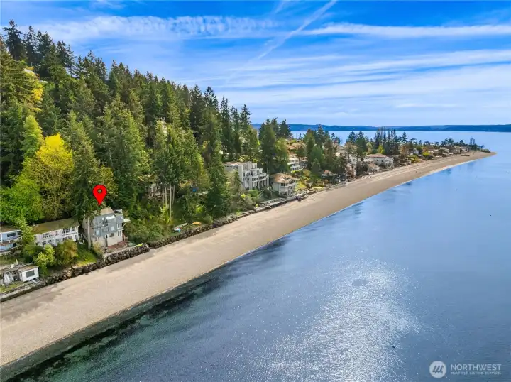 Welcome to Maplewild—An opportunity to own 60 feet of low-bank waterfront and enjoy true Pacific Northwest living. This inviting 4-bedroom, 2.25-bath home blends comfort, flexibility, and an unbeatable connection to the water. Imagine living in a peaceful, private setting that feels worlds away, yet remains conveniently close to the city. Inside, natural light fills the open living spaces, where large windows frame calming waterfront views. The layout is ideal for everyday living and entertaining, with seamless flow between the kitchen, dining, and living area. Four bedrooms offer versatility for guests, work-from-home needs, or extended living. Step outside and embrace the lifestyle. The gentle, low-bank shoreline provides easy access for kayaking, paddleboarding, beachcombing, or simply relaxing by the water. A 34' boat anchor and buoy adds the convenience of private moorage, making spontaneous boating and sunset cruises effortless. Unwind in your private hot tub, perfectly positioned to take in the surrounding serenity, an ideal spot to relax under the stars after a day on the water. Above it all, the rooftop deck offers sweeping panoramic views, creating an incredible space for entertaining or quiet reflection. Maplewild is more than a home; it’s a secluded waterfront retreat where privacy, comfort, and natural beauty come together.