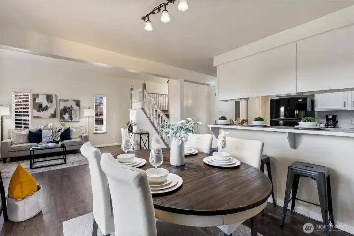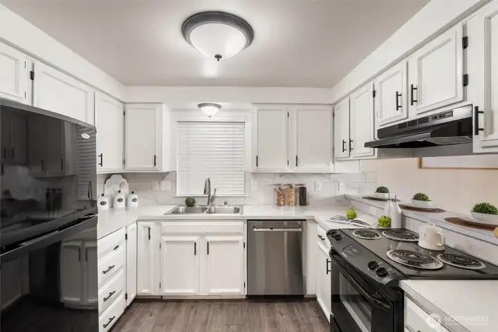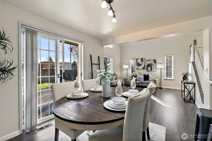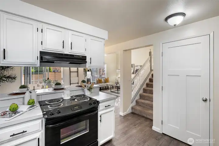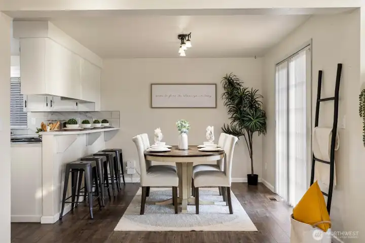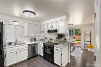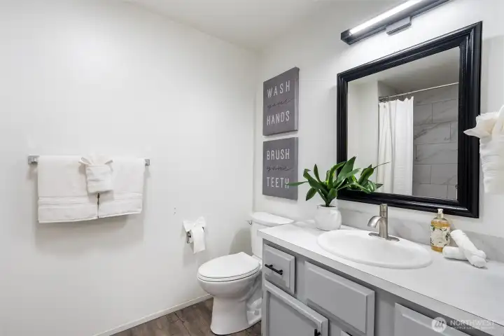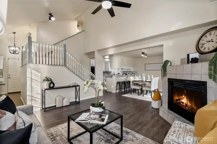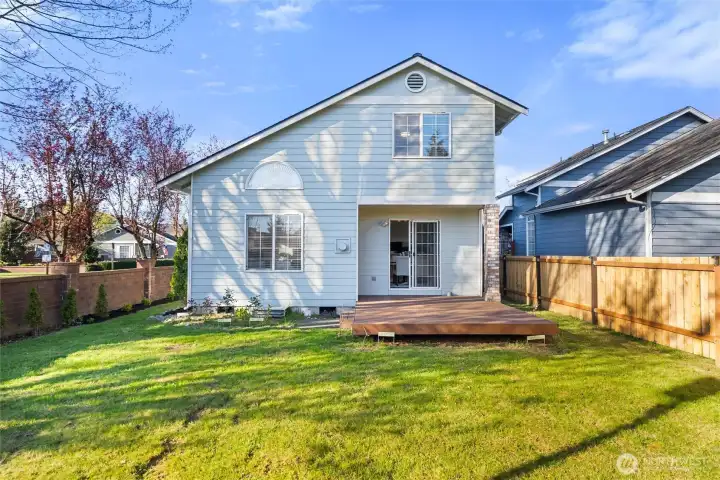 Step into your own peaceful retreat and feel instantly at home. Inside, a light-filled living room with beautiful LVP flooring creates a warm, inviting space. The kitchen is perfect for everyday living and entertaining—step out to the deck for relaxed evenings with friends, then unwind by the fireplace. Upstairs, the primary suite features a refreshed bath, along with two additional bedrooms and an updated full bathroom. The level backyard offers space for play or gardening, and the finished garage adds convenience. Ideally located near shopping, dining, and within the Lakewood School District.