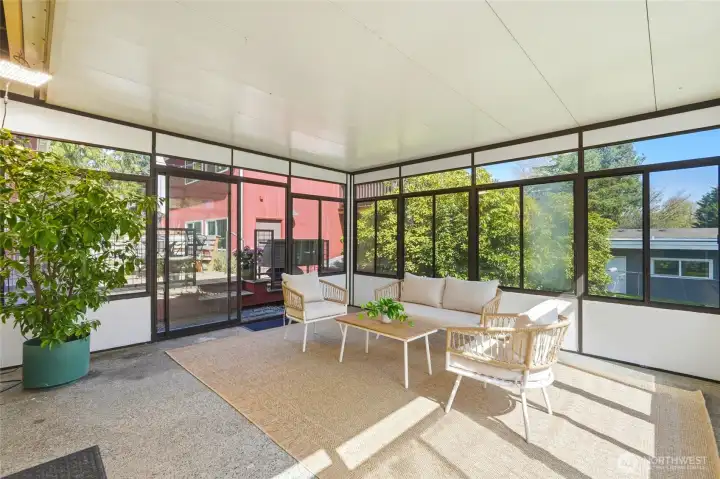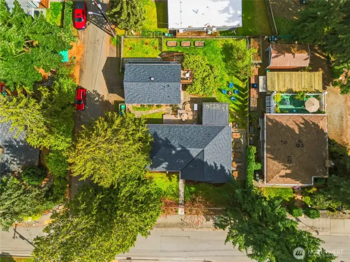 Beautifully maintained Maple Leaf rambler offering exceptional flexibility, income potential, and space on a large corner lot. The main home features 2 bedrooms, 1.75 bathrooms, and an open layout with the kitchen flowing seamlessly into the expansive dining and living areas - the true heart of the home. A generous flex space offers endless possibilities - perfect as a sunroom, playroom, or potentially converted into a bedroom. Great investment with the updated 600 sq ft non-conforming studio DADU with a full bath, ideal for friends, short or long term rental income. Two-car garage with new epoxy flooring offering additional gym/work/shop space. Nearly a quarter-acre lot with fruit trees, raised garden beds, and a deck creating a plant lover’s dream. Move-in ready with updated bathrooms, new roof, paint, and carpet. Commuter friendly with easy access to bus routes and light rail.