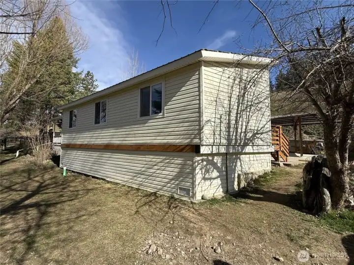 Very well kept home on acreage set up for horses and animals with easy year-round access off a county maintained gravel road. The home is a mid-80s single wide with quality additions on both sides, creating a comfortable and functional one-level layout. Vinyl siding and a metal roof keep maintenance low, and the covered porch is a great spot to take in the setting. Inside you’ll find a large open kitchen and a home that has clearly been well cared for. Forced air electric heat in the home and a wood stove in the garage for additional utility. New front steps at the front door. The property is fully fenced and ready for livestock with lots of cross fencing and a barn that includes an attached garage area, plus both a detached carport and additional covered parking up at the house. There’s also an older rustic cabin that has been used as a bunkhouse. Nicely established yard with garden areas already in place. Lots of rock work throughout the property. Solid setup, good access, and ready to use.