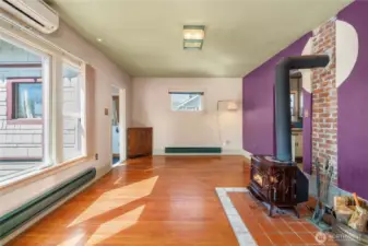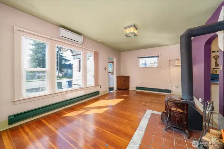 Opportunity awaits! This 2-bedroom home featuring vinyl windows, a full bathroom, and a mix of hardwood and vinyl flooring, the layout is both functional and full of potential. Stay comfortable year-round with a mini-split for heating and cooling, and a cozy wood stove in the living room. Enjoy a dedicated eating nook and a convenient stack washer and dryer area. The home also features wood siding, a newer roof, and a fully fenced, level backyard—great for pets, play, or future outdoor upgrades. Whether you’re an investor looking for your next project, or a buyer ready to roll up your sleeves and build equity, this home is ready for a little TLC or cosmetic facelift. Easy freeway access makes commuting simple and adds to the long-term value. A great opportunity you don’t want to miss! pre inspection available