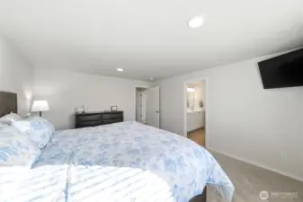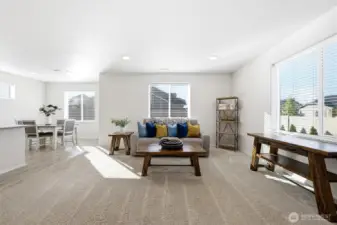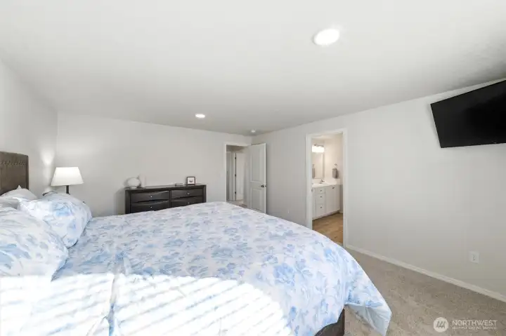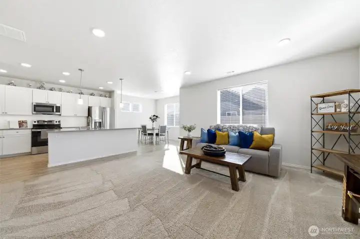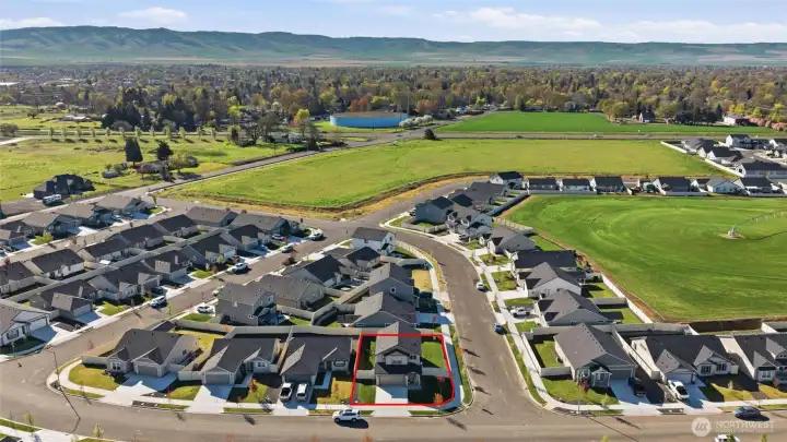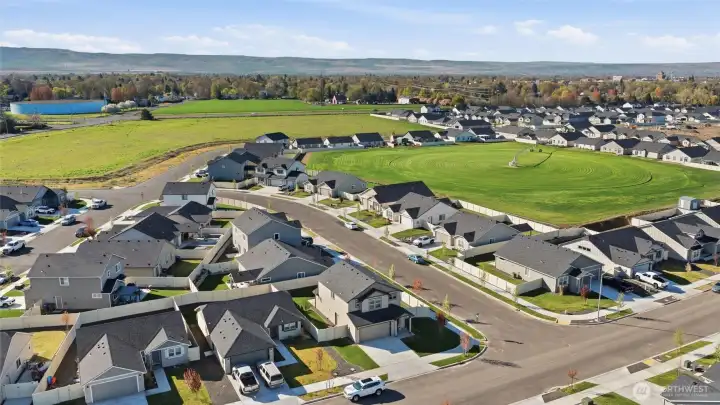 Welcome to Harvey Ranch Estates! Set on a spacious corner lot, this move-in ready Middleton floor plan offers a clean, elevated take on everyday living. Thoughtfully upgraded throughout, the two-story layout is both functional and refined. The main level features an expansive living and dining area that flows seamlessly into the kitchen, complete with quartz countertops, stainless steel appliances, under-cabinet lighting, ample cabinetry, and a pantry. The island offers bar seating—perfect for gathering—while a custom bar with floating shelves and a wine fridge creates a standout space for entertaining. All appliances included. Upstairs, the primary suite offers a spacious retreat with a large walk-in closet, raised dual vanities, and a separate shower with private water closet. Two additional bedrooms are connected by a shared bathroom with dual access, featuring a shower/tub combo and a separate water closet for added convenience and privacy. The upstairs laundry room is ideally located near the bedrooms for everyday ease. A dual-zone climate control system ensures comfort on both home levels. The 4’ garage extension and upper storage rack add valuable storage and flexible space. The fully fenced backyard is landscaped, with room to garden and play, and features an extended patio—ideal for relaxing, summer BBQs, or entertaining year-round. Walking and biking paths, and a nearby golf course complete the setting. Clean, functional, and truly turnkey—this home is ready to go!