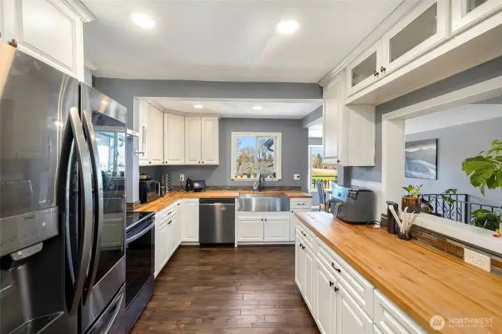 Welcome to this charming farmhouse set on just shy of an acre, offering the perfect blend of timeless character and modern updates. Thoughtfully renovated, the kitchen shines with new cabinetry, butcher block countertops, and stainless-steel appliances, while rich hardwood floors flow throughout, adding warmth and style. The versatile lower level expands your living options with a spacious recreation room or home office, a 3/4 bath, and an additional finished room ideal for a fourth bedroom or guest space. A functional utility/mud room provides convenient access to the patio and expansive deckâperfect for entertaining or unwinding beside the pool or soaking in the hot tub. This property is a dream for hobbyists and outdoor enthusiasts alike, featuring an impressive 1,080 sq ft shop with a durable metal roof and reinforced flooring, an RV carport, multiple outbuildings, a covered woodshed, and even a greenhouse. Enjoy peaceful country living with the added benefit of a prime location just minutes from freeways, restaurants, shopping, and more.
