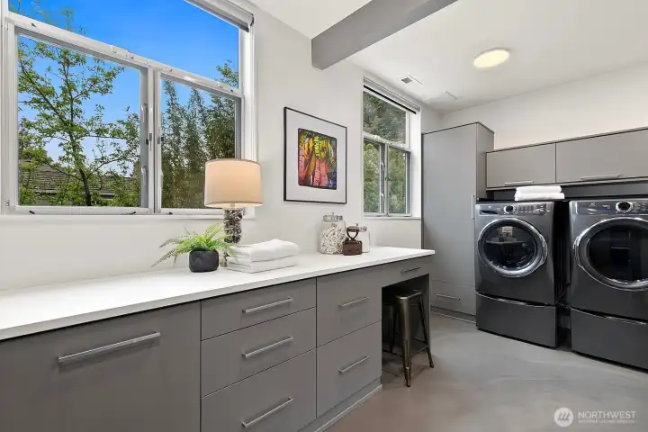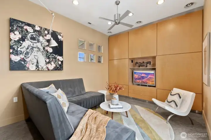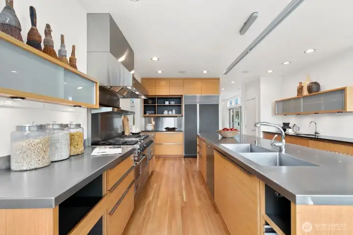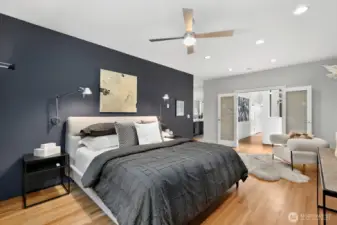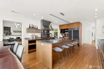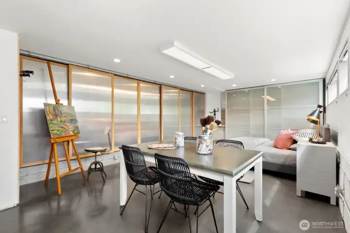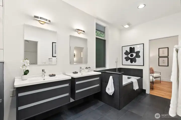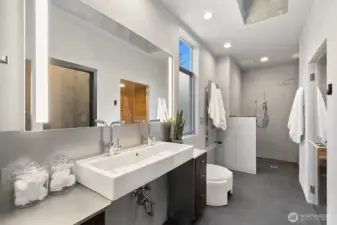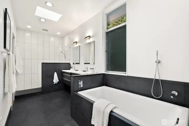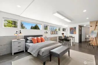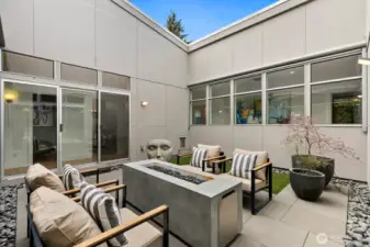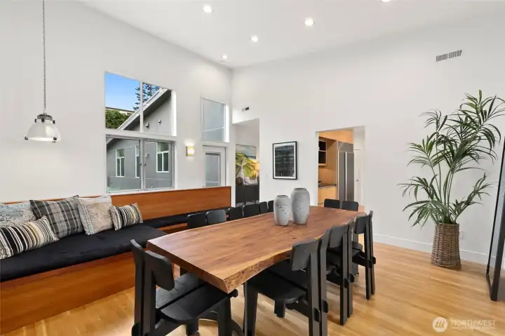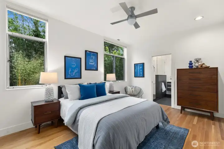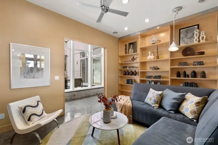 Located in coveted Magnolia, this beautiful modern, fully updated residence offers an exceptional blend of luxury, comfort, and natural privacy positioned in a setting that feels quietly removed, almost like its own private street. Expansive living spaces with soaring ceilings are complemented by softly framed outlooks of the city skyline and Mount Rainier, subtly unveiled through a backdrop of mature trees, creating a rare sense of seclusion while preserving the beauty of the surroundings. Walls of windows fill the home with natural light, highlighting the refinished hardwood floors. The gourmet kitchen is a statement of elegance, featuring premium stainless steel countertop, seamlessly connecting to a spacious dining room and a refined private office just beyond. The main floor hosts a tranquil primary suite complete with a spa inspired ensuite and private sauna, alongside two additional bedrooms joined by a beautifully finished Jack and Jill bath. At the heart of the home, an atrium with a firepit creates an inviting focal point for relaxed evenings. Heated floors extend throughout, enhancing everyday comfort. The lower level offers a versatile rec room with guest suite potential and an additional bath with a walk-in shower. Completing the home is a generous two car garage, ample off street parking, and meticulously landscaped, low maintenance grounds; all with effortless access on and off Magnolia.