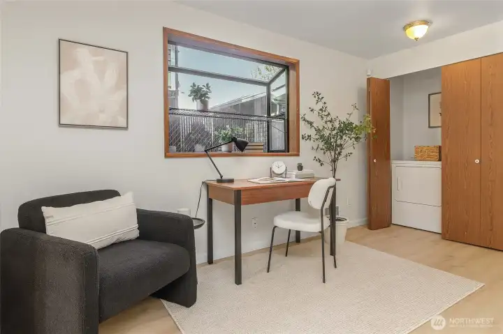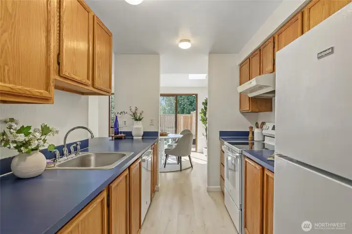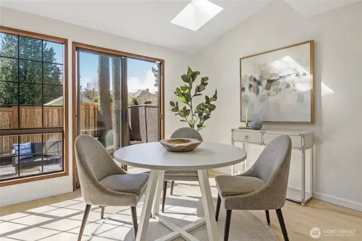 All dressed up and ready for you to move in and enjoy! Natural light streams through this spacious feeling home with 3 bedrooms and 2 baths up and 1/2 bath on the main. New flooring throughout and freshly painted inside and out. Crisp and clean! New flooring and kitchen range! Systems are a go! How about this convenient location! Access to everywhere between 2 light rail stops, bus lines and shopping galore super close by! Groceries and accouterments just a block or two away! Urban, yet birds chirping in the semi-secluded area with trees and northwest vibe. The home is sited on a dead end street so limited cars passing by! Lovely Pinehurst neighborhood with Victoria Creek Park and Hazel Wolk K-8 STEM a few blocks near!