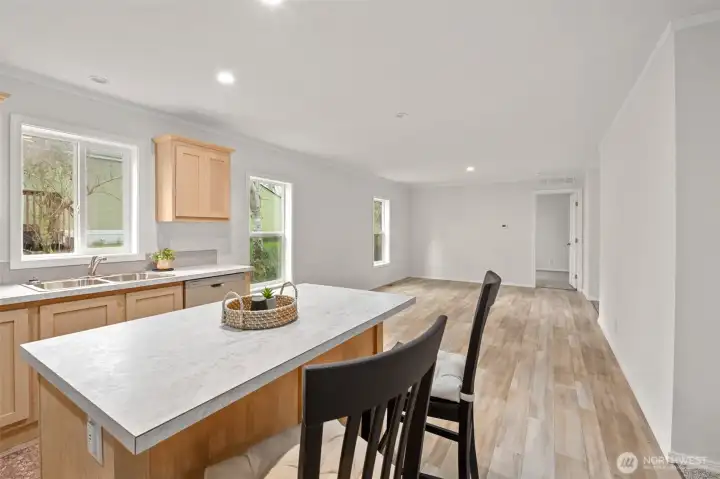 Experience relaxed coastal living in this beautifully finished 2026 home. Situated on a large corner lot, this 4-bedroom 2-bath home offers a light and airy feel with thoughtfully designed living spaces throughout. The spacious open-concept layout features multiple living and dining areas, offering flexibility to live, relax and entertain. The spacious primary suite includes a his and hers closet just off the ensuite bath. A convenient utility room off the kitchen adds everyday functionality. Step outside to a welcoming front porch entry, along with a small rear porch, tree-lined property edge, outdoor shed for additional storage, and ample driveway parking. Ideally located just a short commute to downtown shops, dining, and beach access, this property offers the best of both comfort and coastal lifestyle. Move-in ready and ready to enjoy from day one!