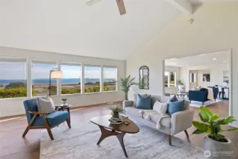 Stunning south-facing bluff home with breathtaking front-and-center views of Seattle, Mount Rainier, the Olympic Mountains, the Kitsap Peninsula, and Double Bluff. Enjoy a front-row seat to the shipping channel from this quintessential Whidbey Island bluff property. This rarely available, beautifully updated home sits on the desirable water side of Useless Bay Colony. Recent upgrades include beautiful new floors throughout the main living areas, including the office. The spacious layout offers an ideal setup for holiday gatherings and effortless entertaining. Additional highlights include a massive garage with shop space and ample parking. Living in the Colony gives you the opportunity to join the Useless Bay Golf and Country Club and enjoy its outstanding amenities. A fantastic golf course, along with a pool, tennis and pickleball courts, and a fabulous on-site restaurant. This is true Whidbey Island living at its finest—spectacular views, water-side location, and access to exceptional club amenities. Don’t miss this special opportunity!