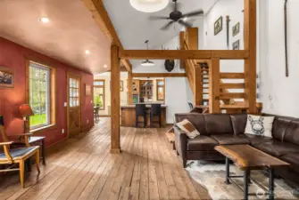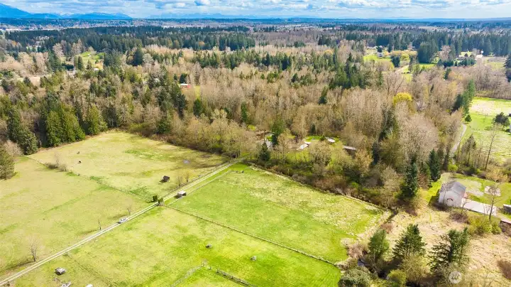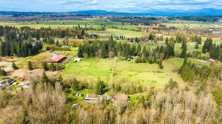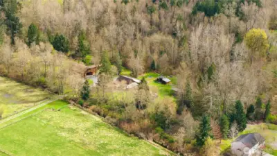 LUXURY BARN LIVING! Discover this exceptional 21 acre self-sustained homestead, offering a perfect blend of natural beauty. The spacious property features lush fields, and a majestic expansive mixed forest. Highlights include a reclaimed timber frame barndominium planned for expansion, complete with a 4-bedroom septic system. The versatile buildings and amenities include: A spacious shop it's own 200 amp service, an upper-level area, a dedicated freeze-dryer/canning room, a mechanic workroom, a four-bay carport, a garden shed for tools and supplies, a pole barn suitable for RV or trailer storage, a tractor and woodshed area, an adorable timber-frame outdoor entertainment structure, a covered hot tub area overlooking a peaceful small pond. The charming, isolated home features a master bedroom with French doors opening onto a covered porch, perfect for relaxing and enjoying the natural surroundings. Locally reclaimed fir floors add an organic rustic touch. Set within a private yet close-in location, this retreat offers excellent connectivity to I-5 for convenient travel. Expansive railed pastures provide ample space for horses, livestock, or other outdoor pursuits. The entire property is flat, with plenty of room to build your dream home, horse arena, or additional structures. This property combines the tranquility of nature with practicality of a well-equipped homestead - an ideal place for sustainable living, recreation and future expansion.