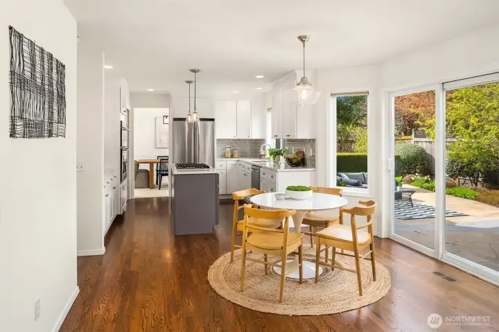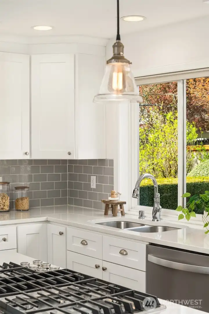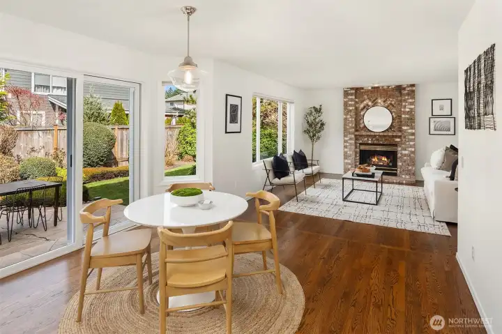 The Pheasant Hill community in Meadowdale is the kind of neighborhood people move into and don't want to leave, and this home, situated at the end of the cul-de-sac, is a perfect example of why. Hardwood floors and vaulted ceilings set the tone, and large windows bring light into every room. A generous living room flows naturally into the dining room, warm and inviting without feeling formal. The remodeled kitchen features quartz countertops, updated appliances, and a gas cooktop with abundant pantry storage, and opens into a great room anchored by a gas fireplace. Sliding glass doors connect the living space directly to a private patio and a beautifully landscaped yard that blooms through every season. Strawberries and blueberries are already growing, and birds visit year-round. A dedicated office, powder room, and laundry room round out the main floor. Upstairs, four bedrooms offer a quiet retreat. The primary suite features a soaking tub, a separate shower, double vanity, and a walk-in closet. Three additional bedrooms share a full bath. Meadowdale Elementary, Middle, and High Schools are all nearby, and Edmonds is a short trip away. These owners have taken meticulous care of every inch, and it shows. Move-in ready in every sense. Once you step inside, you'll know.