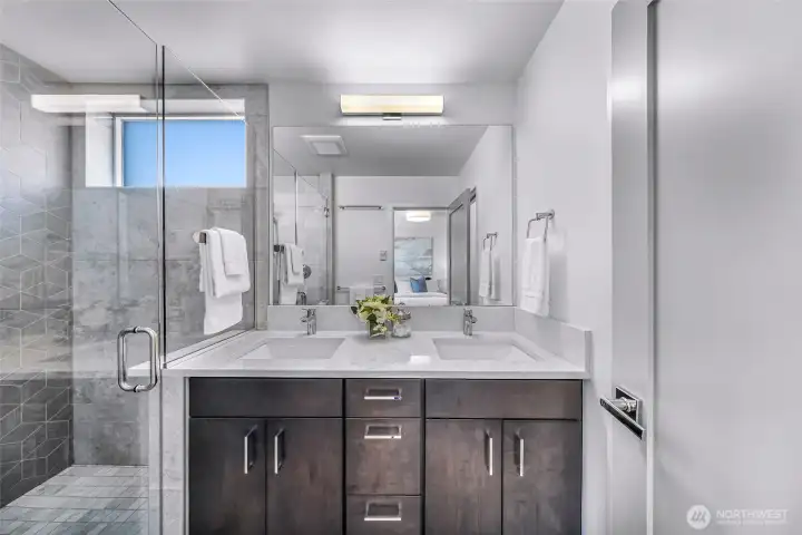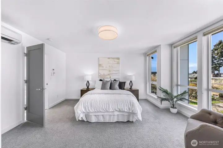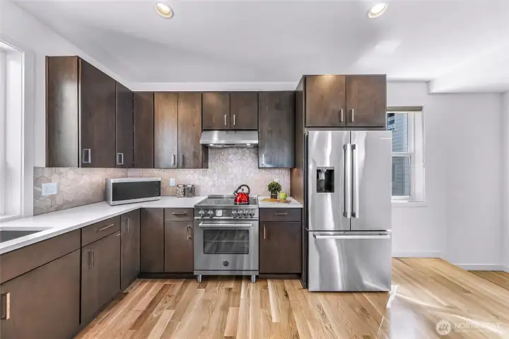 Why settle for a townhome when you can own this nearly-new free-standing Fremont residence in the heart of the action? Built in 2021, this 1,820 SF, 3-bedroom / 3.25-bath home offers modern finishes, exceptional natural light, a Walk Score of 91, and minutes to downtown Fremont’s shops, restaurants and neighborhood conveniences (Marketime Foods is just down the street). Entry level features a private bedroom and full bath—ideal for guests or home office. The sun-filled main level presents an expansive great room and gourmet kitchen with large eating island, quartz counters, stainless high-end appliances, and a convenient powder room. Real 3/4" oak hardwood floors throughout the main living areas create a warm, refined look perfect for entertaining or everyday living. Upper level hosts the impressive primary suite with ensuite 3/4 bath and walk-in closet, plus a third bedroom with its own full bath for privacy and comfort. Roof access leads to a large private rooftop deck with retractable awning and sweeping views including Mt. Rainier, downtown , the 4th of July fireworks, and a peek-a-boo view of the Space Needle—an ideal indoor/outdoor retreat for warm days and cool evenings. Practical conveniences include a covered carport plus room for 1 more uncovered parking space. This modern, quiet-in-city home is move-in ready—a rare opportunity to own a practically new Fremont home with everything you need at your fingertips.