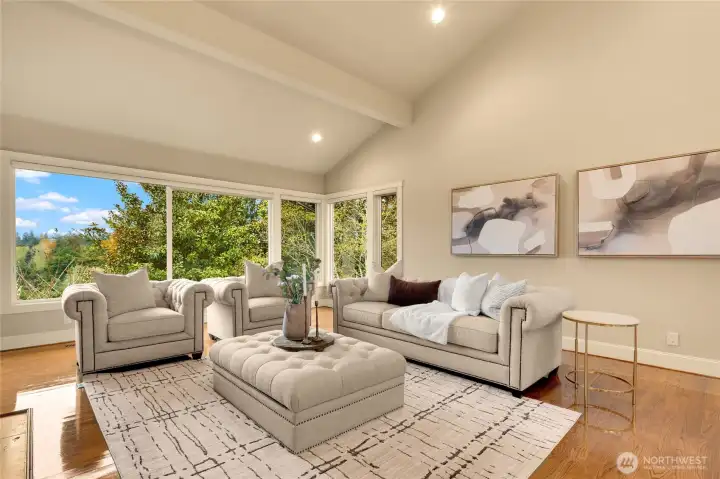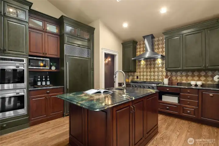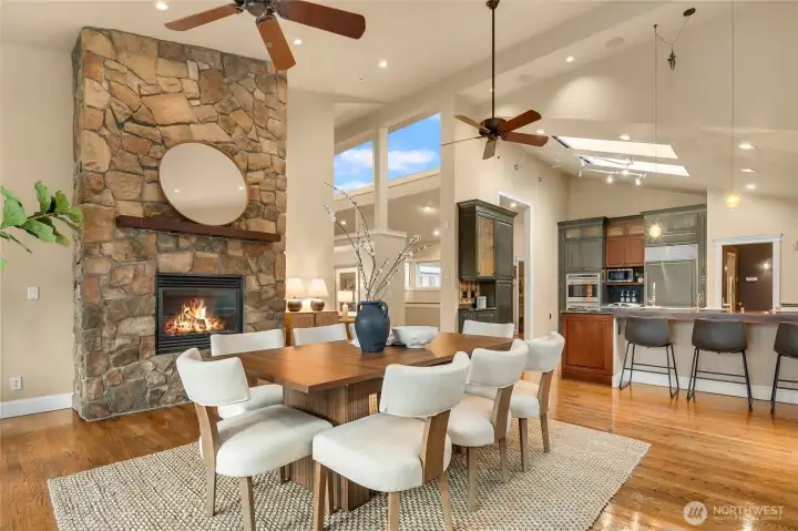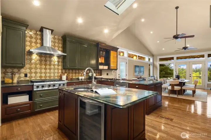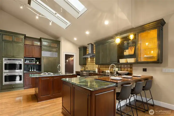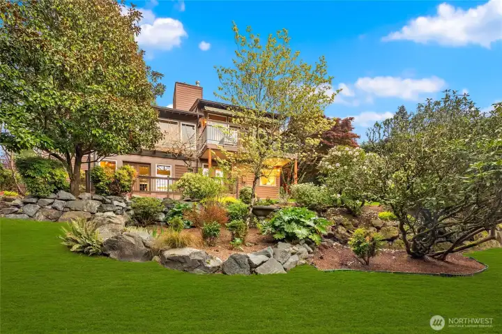 Elegant Clyde Hill 2007-built home offering 4 bedrooms and 4.5 bathrooms with a thoughtfully designed floor plan and refined finishes throughout. Soaring ceiling with Skylight in the kitchen and dining areas creates a grand and airy ambiance, complemented by rich hardwood flooring and abundant natural light. 4 Fireplaces add warmth, character, and timeless sophistication across multiple living spaces. The layout is loaded with luxuries and necessities: slab granite countertops, stainless steel appliances. The primary suite includes a private study, providing a perfect retreat for work or relaxation. Wine cellar-ideal for entertaining guests, or extended living. The finished walk-out basement expands the home's versatility with a spacious Rec room and a second kitchen. The secondary bedroom with a built-in Sauna, offering a spa-like experience at home. Located in the highly desirable Clyde Hill community, just minutes to Bellevue amenities, parks, and top-rated schools. A rare opportunity to own a home that combines elegance, functionality, and a prime location.