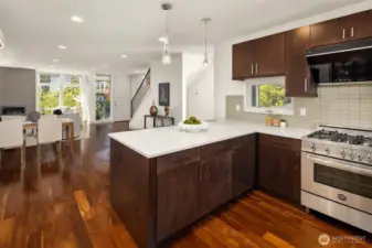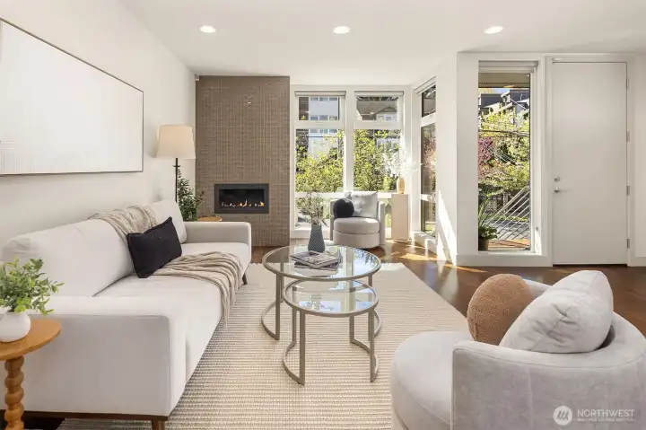 You will not want to miss this attractive Magnolia townhome, filled with natural light from expansive windows. No HOA. This Built Green 4 star certified home is energy efficient and thoughtfully designed. Featuring AC minisplit, hardwood floors, a wide living room with a cozy gas fireplace, a functional layout. The chef’s kitchen is open and stands out with quartz countertops, Bertazzoni stove, stainless steel appliances, a pantry, and a spacious island with bar seating—ideal for everyday living and hosting. Upstairs, the primary suite offers a luxurious ensuite bath with a walk-in closet, along with a second bedroom, full bath, and convenient laundry. The lower level includes a third bedroom and ¾ bath—perfect for guests, a home office, or flex room. Enjoy ample outdoor living spaces with two decks and a small fenced backyard. Expansive rooftop deck showcases stunning 360-degree sound, city & mountain views. Additional highlights include fresh paint throughout, an attached garage and extra storage in lower level. Ideally located near bus lines and Discovery Park, with easy access to downtown Seattle, Interbay, and the waterfront. This home also places you close to Magnolia’s charming village shops, cafés, and parks, offering a perfect blend of convenience and neighborhood feel!