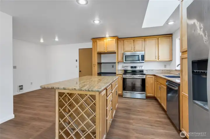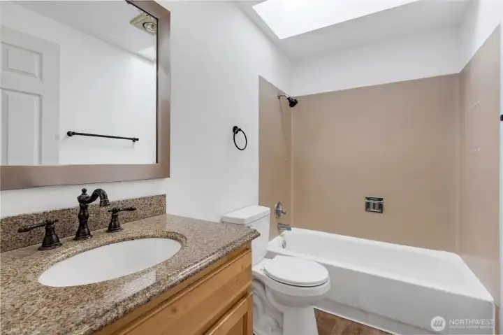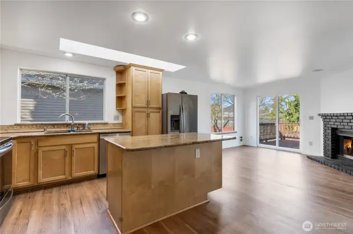 Updated 3 bed, 2 bath rambler in Federal Way’s highly desirable Sherwood Forest neighborhood, backing to a private greenbelt! This move-in ready home offers modern upgrades, open-concept living, and a prime location just minutes to I-5 for an easy commute. The updated kitchen features slab granite countertops, ample cabinetry, and quality finishes—perfect for everyday living and entertaining. The open great room design showcases vaulted ceilings, large windows, and abundant natural light throughout. A spacious family room with cozy fireplace opens to a deck and fully usable backyard, creating seamless indoor-outdoor living with rare greenbelt privacy. Additional highlights include new and durable flooring, fresh interior paint, and a newer roof for peace of mind. Located in a quiet, established neighborhood close to shopping, schools, parks, and major highways. Single-level homes with greenbelt privacy in Sherwood Forest are hard to find—don’t miss this opportunity!