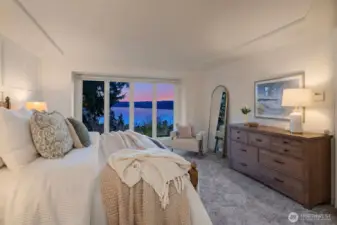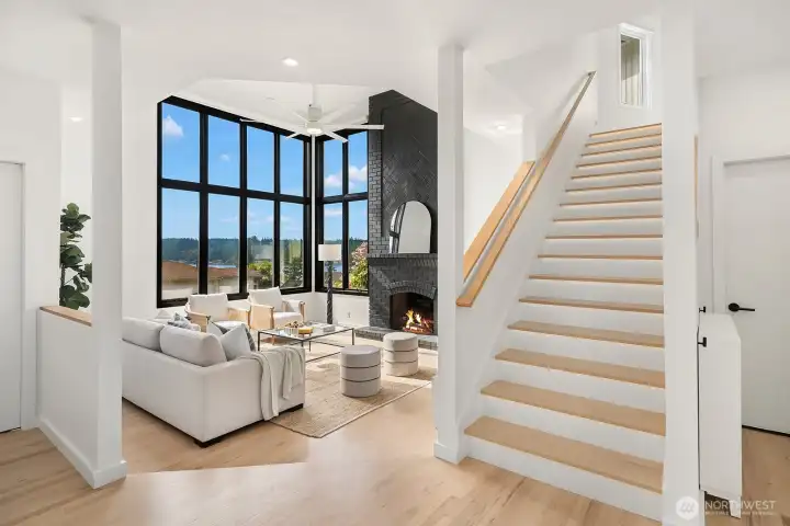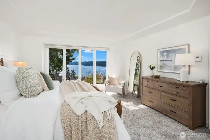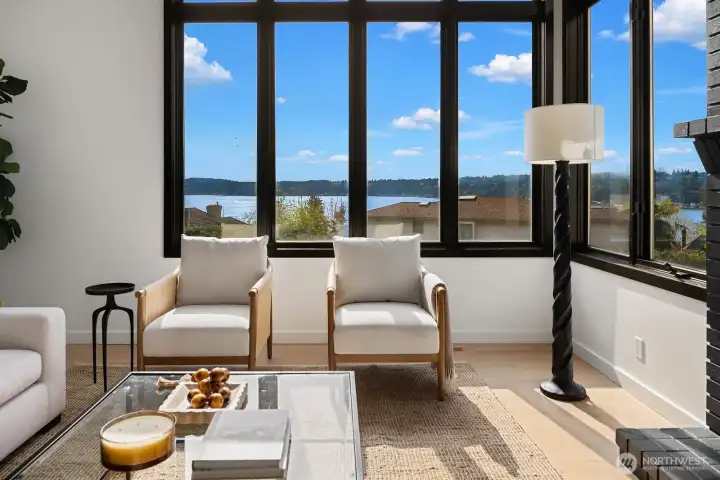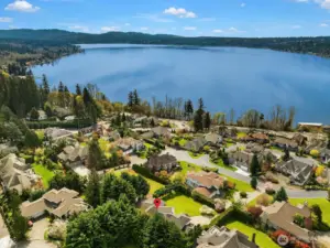 Stunning panoramic views of Lake Sammamish and breathtaking territorial landscapes greet you from nearly every room in this meticulously updated home. Thoughtfully renovated with exceptional attention to detail, this 3,600 sq ft residence offers 4 bedrooms and 2.25 baths. Step inside to a grand vaulted entry and stunning staircase that sets the tone for the elegance throughout. The main level flows from a formal dining room into a sophisticated den with a wet bar, then into a gourmet chef's kitchen with high end appliances, ample storage, and a bright breakfast nook. The family room features a fireplace and floor-to-ceiling windows framing the lake views, along with a private home office. Dual staircases add convenience and architectural charm. Upstairs, the primary suite is a true retreat with a gorgeous 5-piece ensuite, walk-in closet, and lake views to wake up to every morning. Three generously sized bedrooms and an oversized bonus room with a cozy loft play area complete the upper floor. Smart home features include Tesla charging, home automation wiring, and touchless faucets. One of the most private lots in the neighborhood, set back with buffers on all sides and no rear neighbors. Members enjoy Inglewood Beach Club with private beach access, swimming, water sports, and optional kayak and paddleboard storage. Three-car garage and lush garden spaces complete this exceptional offering. Near award-winning Lake Washington Schools, shops, dining, parks, SR-520, and Microsoft.
