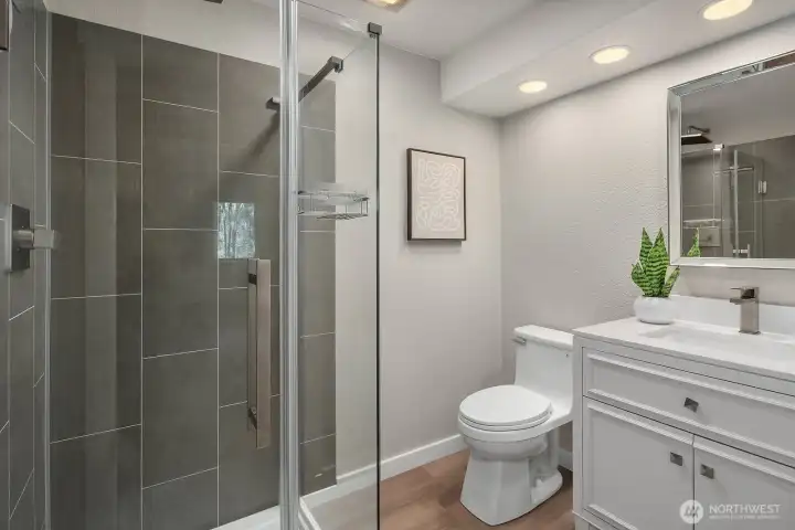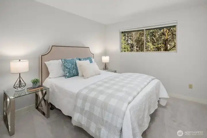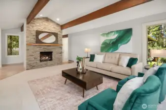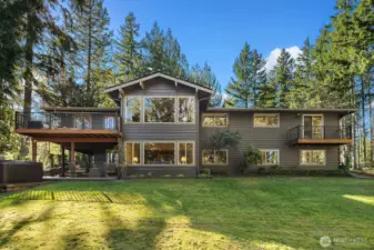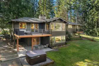 Welcome to this stunning, updated home nestled in the heart of Sammamish, offering the perfect blend of modern elegance and everyday comfort. This spacious 5 bedroom, 2.5 bath, 3,052 sqft residence greets you with a welcoming front porch and entry. The expansive open-concept main level showcases a gourmet kitchen featuring updated lighting, ample storage, and a layout that flows seamlessly into the dining and living areas. The living room impresses with a cozy gas fireplace, soaring vaulted ceilings, and walls of windows flooding the space with natural light, plus direct access to the deck. The primary suite is a true retreat featuring a private deck, large walk-in closet, and updated bath. Two additional main-level bedrooms share a full hall bath. The lower level offers incredible flexibility as an ADU with private slider entrance, kitchenette, second dedicated laundry, updated 3/4 bath, two bedrooms, a second fireplace, and a relaxing hot tub on the patio. Major updates include a newer roof and furnace, refreshed septic system, new designer carpet, refinished hardwoods, and fresh interior paint throughout. Outside, enjoy a circular pull-through driveway with ample parking for a boat or RV, full sprinkler system, deer-proof partial fencing, and lush privacy landscaping. A gardener's dream with planter boxes ready to go. Located in the award-winning Issaquah School District with easy access to parks, shopping, and tech corridors.