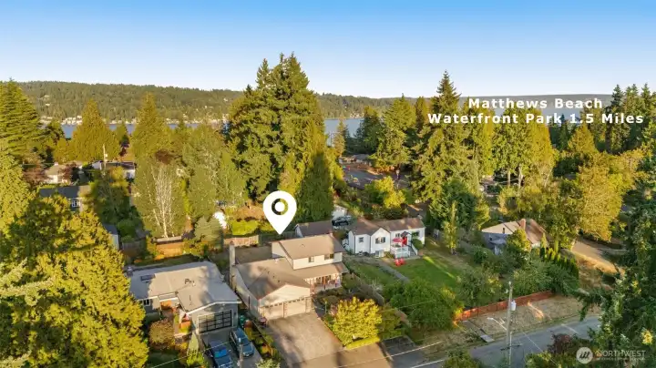Welcome home to this classic two-story Traditional in a popular NE Seattle neighborhood! Just 4 blocks to the Burke Gilman Trail, and 1.5 mi to public Matthews Beach Park waterfront access. A charming covered front porch and double-door entry welcome you into a flowing floorplan featuring gleaming hardwoods on the main level. The distinctive brick entry hallway leads into a bright living room, complete with a cozy window seat overlooking the front yard. Entertain with ease in the dining room off the refreshed kitchen, which boasts crisp quartz countertops, tile flooring, and newer stainless appliances. Just off the kitchen, and the inviting family room features a classic wood-burning fireplace with a handsome brick surround. Main floor also hosts a convenient half-bath, laundry room, and access to the attached garage. A sliding door leads out to the fully fenced backyard with established rose garden. Upstairs, you'll find a coveted layout with three bedrooms + two full bathrooms, including a spacious Primary Suite with a large closet and it's own ensuite bath. Complete with an oversized two-car attached garage, this home checks all your boxes! Inspection Report Available, Plus a 2-year Home Warranty to Buyer for piece of mind.