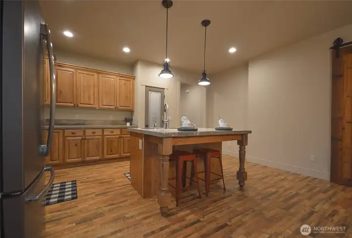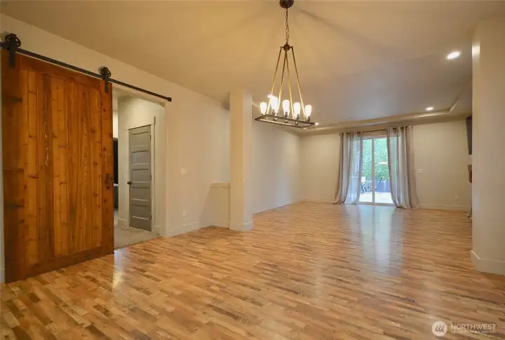 A beautiful barn door adds character while providing separation and privacy for the additional three bedrooms and laundry room.
