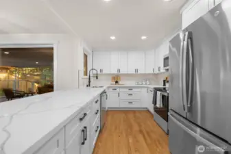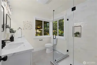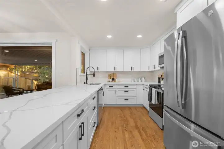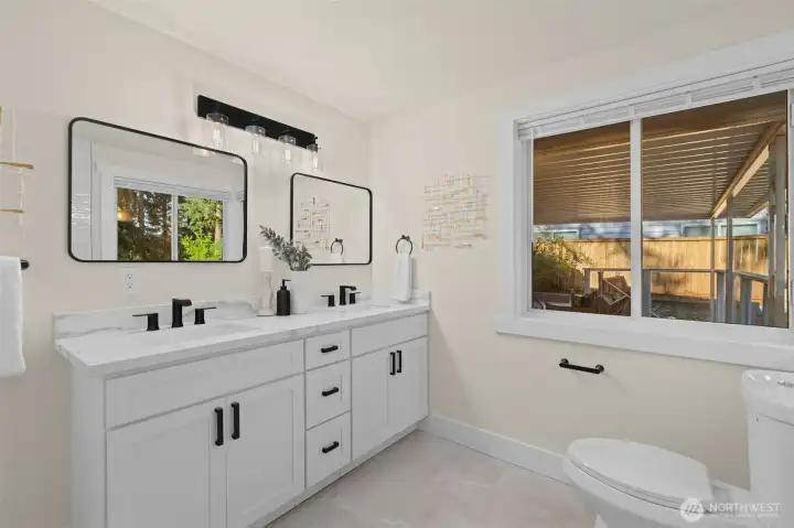 Beautifully renovated 4 bedroom, 2.75 bathroom home tucked at the end of a quiet cul-de-sac. Enjoy deeded access to the Civic Club, a private Lake Washington waterfront community offering a beach, dock, and boat launch. The light filled kitchen features quartz countertops, new cabinetry, and new appliances. The kitchen opens effortlessly to the living and dining areas, creating a seamless and inviting space for everyday living and entertaining. Step outside to a covered deck designed for year round enjoyment, complete with peekaboo Lake Washington views in the winter. The main level showcases newly refinished hardwood floors, a spacious primary suite, and two additional bedrooms. A wood burning fireplace connects both levels, bringing warmth and character to the home. The lower level offers exceptional flexibility with two separate ground level entries, a generous living area, bedroom, and full bath. There is space to add a kitchenette, presenting an ideal opportunity for multigenerational living or income potential. The beautifully landscaped backyard features rose bushes, raspberry and blueberry plants, three apple trees and more. Situated on a large lot with boat/RV parking, this home truly has it all!