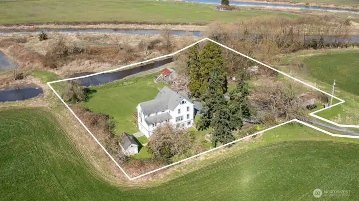 Rare opportunity to own a piece of Stanwood history. Built in 1890, this legacy retreat surrounded by almost 1000 acres has seen only four owners in 136 years & on the market for the first time in over two decades w/views from every room! Tucked at the end of a breathtaking 1,600’ privately owned driveway, feels like you are living in a park, the property offers seclusion w/no neighbors in sight. Spanning 316’ of medium-bank waterfront, a front-row seat to PNW’s finest wildlife: Trumpeter swans, snow geese, blue herons, river otters, & eagles. The ocean-accessible waterway is perfect for fishing & a truly sustainable lifestyle.The grounds feature an established orchard w/Asian pears tree & other fruit trees, plus room for garden area. Thoughtfully constructed on a significant elevated building pad for peace of mind & commanding views, the home features a massive basement w/radiant floor heating—ideal for a climate-controlled workshop, hobby space, or superior storage. While you will feel worlds away in this private retreat, you are remarkably close to modern amenities - minutes from downtown Stanwood’s shopping, groceries, & dining, w/quick freeway access for commuting. Experience the perfect blend of 19th-century charm, total privacy, and 21st-century convenience. This is a once-in-a-generation private waterfront retreat is waiting for its fifth steward to call it home. Discover the peace, history, & unparalleled beauty of this Historical Landmark Jorgensen HOMESTEAD today.