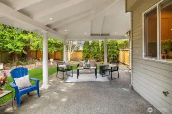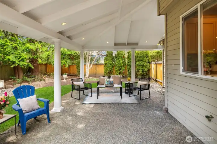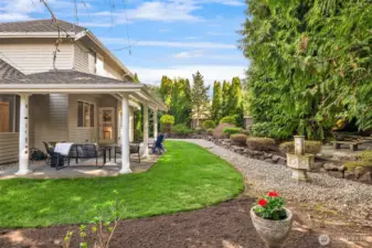 Nestled on a generous .30-acre corner lot, this charming Buchan home offers the perfect blend of comfort and curb appeal. Featuring 4 bedrooms and 2.5 baths, the home shines with fresh interior paint and major system upgrades including a newer furnace, A/C, hot water tank, and a 50-year presidential roof. Step outside to your own private retreat with a lush park like back yard; you'll love the covered patio ideal for year-round enjoyment. Enjoy the thoughtfully designed outdoor space that invites everything from warm, sunny days of gardening to enjoying a array of blooms and color throughout the seasons. Mature native plantings including cedars, rhododendrons, and azaleas blend beautifully with the Japanese maple and hydrangea, creating a serene Pacific Northwest setting. A gentle fountain adds to the tranquility. If you enjoy bird watching, 16 species have been identified so far!