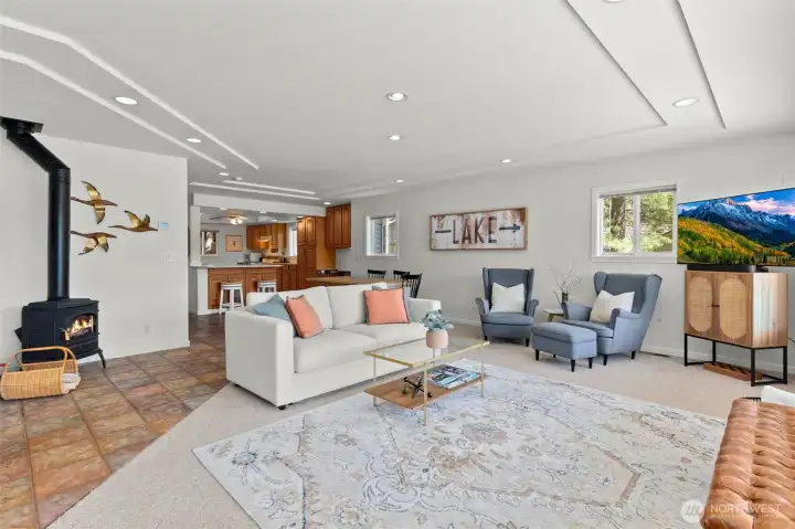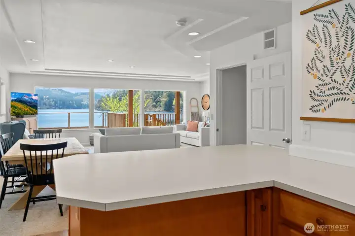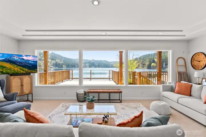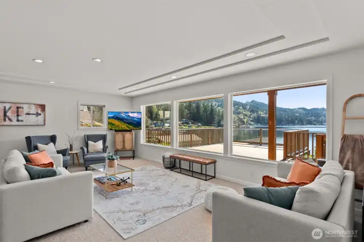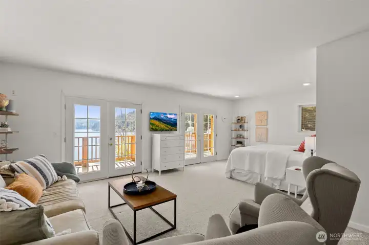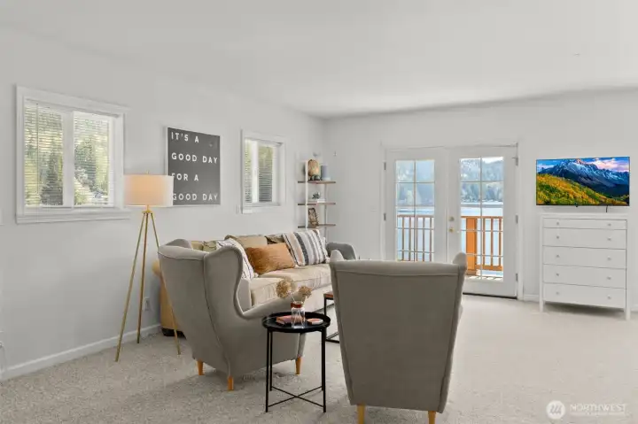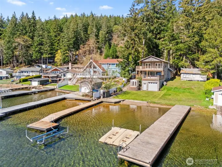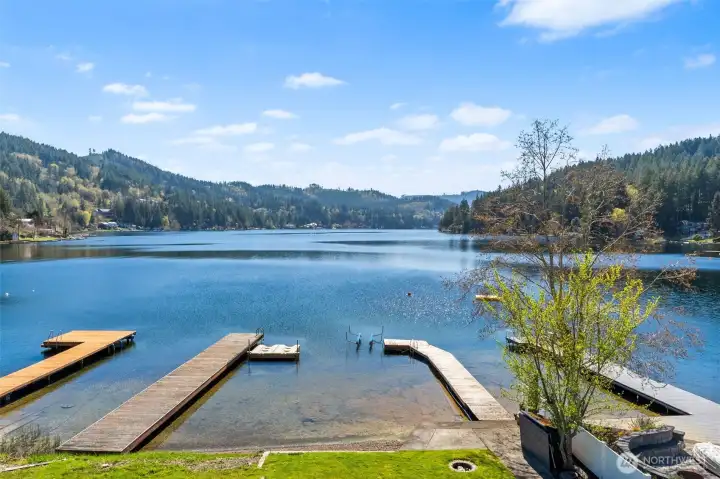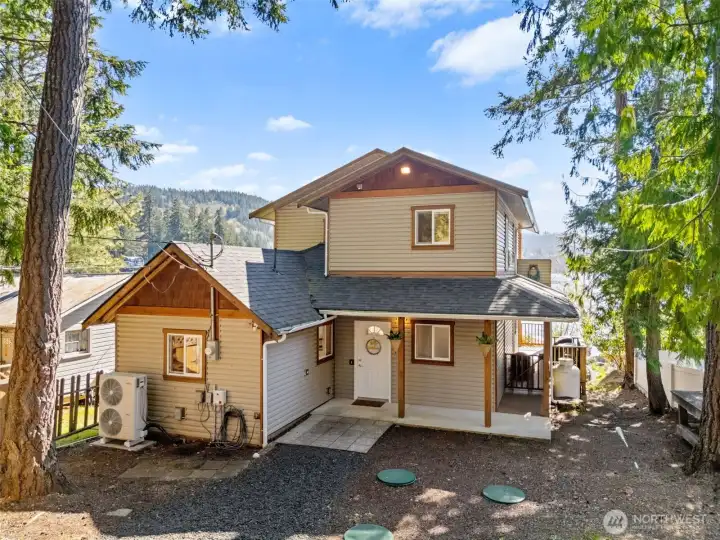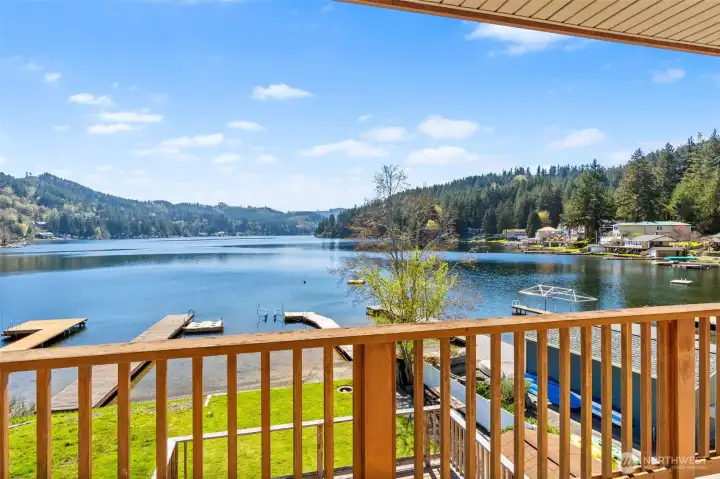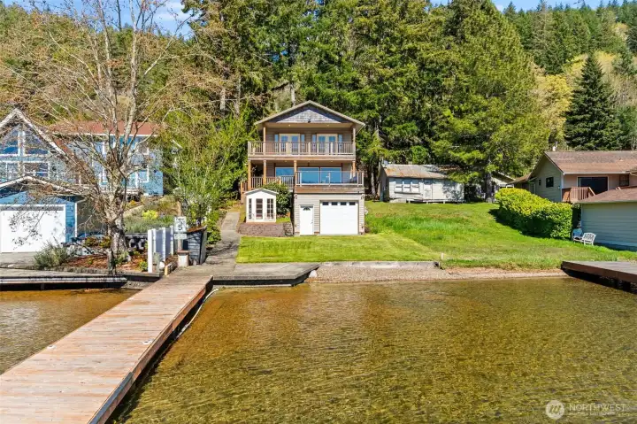 Get your lake place now and be ready for summer at beautiful Summit Lake! This rare low-bank waterfront home captures expansive southwesterly views and sits at the ideal end of the lake for sun, space, and a true getaway feel. Bright and inviting, the main level features an open kitchen and living area flowing seamlessly to a huge deck, perfect for entertaining or soaking in long summer evenings. Thoughtfully updated with a new roof (2022), heating & cooling system, fresh interior paint, and modern fixtures, this home is move-in ready, and may even be sold furnished (with the right offer) for a turnkey experience, or instant Airbnb investment property. The upper-level suite offers a private retreat with its own covered deck and stunning lake views. While the septic (new in 2021) is permitted for one bedroom, the home lives larger with a finished second room down, and flexible upper space that could be divided for additional sleeping areas. Enjoy easy access to the water with minimal steps, a private dock, and usable shoreline, plus outdoor sauna. Ample parking, detached storage garage, and lower-level storage with boat access add functionality. A rare combination of comfort, updates, and premier waterfront living-just in time for the Summer season!