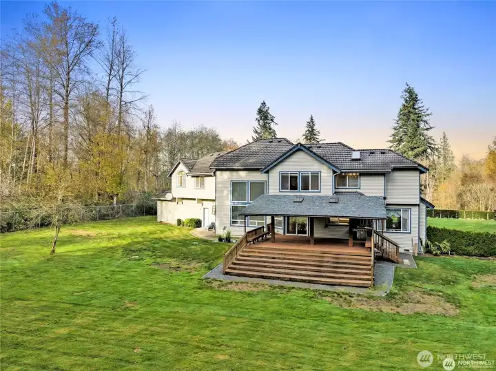 Discover this exceptional single-family home nestled in a quiet, friendly community in the Clearview area of Snohomish. Situated on an expansive 1.41-acre lot (over 60,000 sq. ft.), this stunning property offers both space and comfort to accommodate a variety of lifestyles. Step into a grand entryway featuring soaring vaulted ceilings and beautiful hardwood floors that flow throughout the home. With approximately 3,717 square feet (buyer to verify), this spacious residence features 4 bedrooms and 2.5 baths, including a luxurious 5-piece primary suite with a walk-in closet. Additional highlights include a durable tile roof and a deep, oversized 3-car garage, providing ample room for vehicles, storage, or recreational gear. Enjoy outdoor living on the large backyard deck, perfect for entertaining or relaxing, along with generous grounds offering plenty of space for RV, boat, or additional parking.