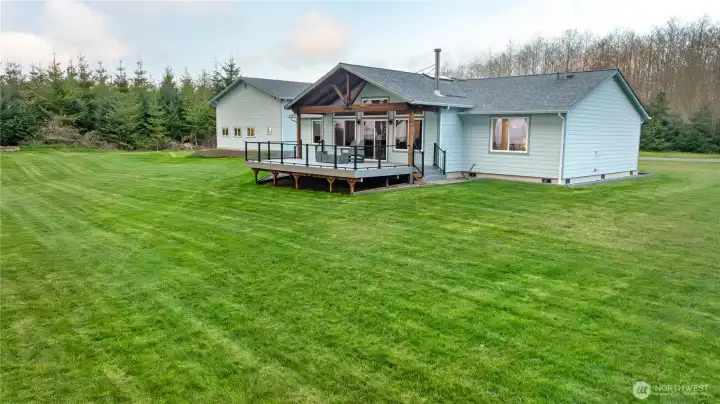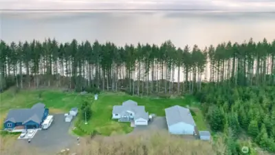 Nestled at the very end of a quiet cul-de-sac in desirable Willapa Bay Estates, this beautifully designed 3-bedroom, 1.75-bath home offers privacy, tranquility, and truly one-of-a-kind views from the moment you step inside. Situated on just over 2 acres, the property provides the perfect blend of space and functionality, ideal for those seeking room to live, work, and play. The open-concept layout welcomes you with a spacious dining area right off the entry, seamlessly flowing into a stunning kitchen featuring a distinctive hexagon island, sleek stainless steel appliances, and elegant granite countertops, perfect for both everyday living and entertaining. The main living room continues to impress with vaulted ceilings, large windows, wood stove, and direct access to the large front deck w/ glass railing, trex decking and an outdoor firepit. Retreat to the generously sized primary suite, complete with a walk-in closet and a private bath, offering a peaceful haven at the end of the day. Additional to the attached 2-car garage, the property continues to impress with a massive 3-bay, 2,000 sq. ft. insulated shop complete with a ¾ bathroom, 200 amp service, and wood stove, ideal for hobbyists. There’s also dedicated RV parking with full hookups, plus a 10 x 12 garden shed for additional storage. With its unique setting, over 2 acres of usable land, impressive shop space, and breathtaking views, this is truly a rare opportunity in the Pacific Northwest.