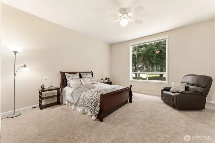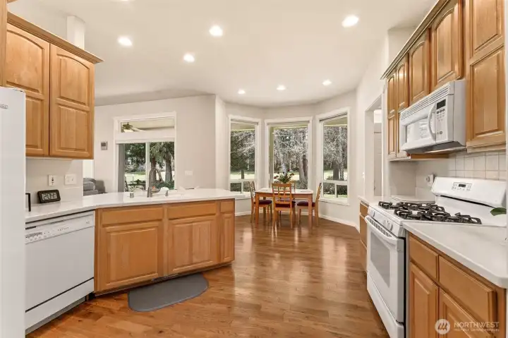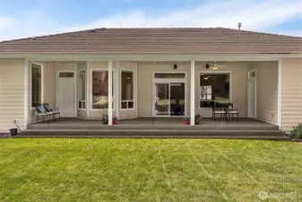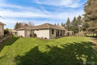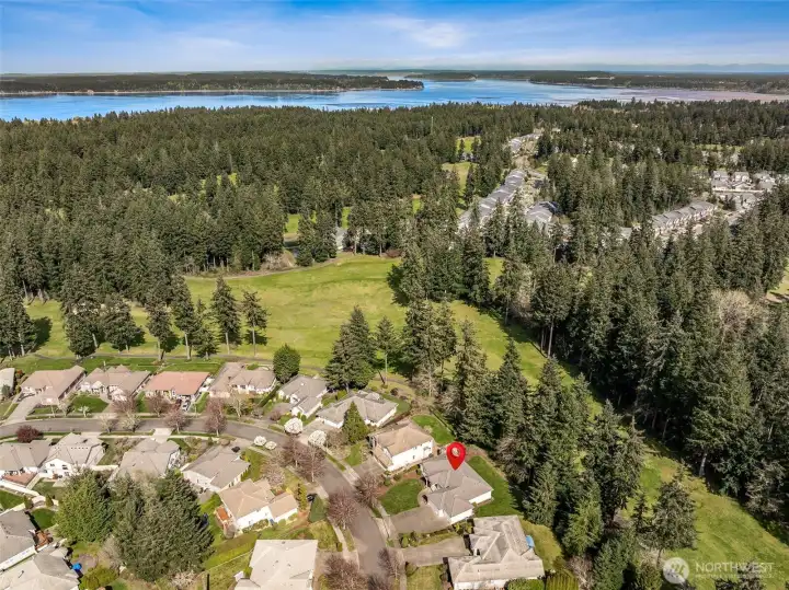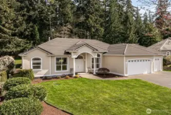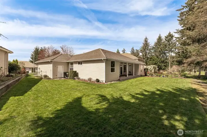 Exquisitely manicured single story home tucked back off on the 9th hole at Hawks Prairie Golf Course. Open floor plan living, Dining and Kitchen with breakfast counter. Den w/built-in cabinet. A huge primary suite w/ walk-in closet & a luxurious 5-piece bath. Two more spacious bedrooms next to another full bath. Enjoy tall ceilings throughout. Step outside to your huge covered patio plumbed for gas & private park-like greenbelt backyard leading to the golf course trails. Lots of extras: Central A/C, sprinkler, large 3-car garage, storage, and 50-yr cement tile roof. Perfectly located just south of JBLM and a few miles north of Olympia. Priced to sell. Savings passed on to Buyer - perfect for choosing your own custom colors and brand-new appliances. Imagine the possibilities!