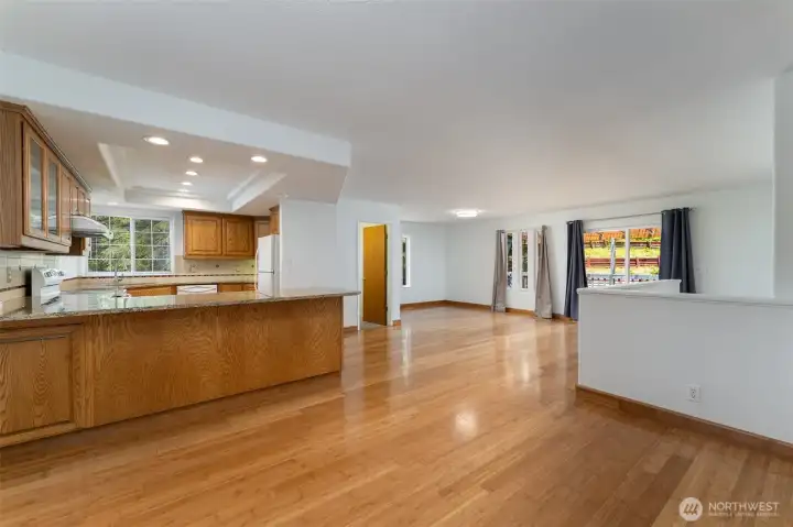 Tucked in a wooded setting and very close to I-5, this spacious and versatile home offers privacy, functionality, and room to spread out. The light-filled main living area features bamboo flooring and flows into an open kitchen with slab granite countertops, oak cabinetry, and ample workspace. Large windows invite natural light and views of the surrounding greenery.With 3 bedrooms and 2.5 bathrooms, the home provides comfortable everyday living with a flexible layout. The lower-level living area features new luxury plank flooring—ideal for a media room, guest space, or extended living. An upper-level bonus room offers additional versatility for an office, hobby space, or extra sleeping area.Enjoy outdoor living on the expansive deck, perfect for entertaining or relaxing in a serene setting. A second parcel enhances privacy and creates a natural green space buffer.Two double-car garages provide abundant room for vehicles, storage, or projects, with a separate rec room above the second garage for added flexibility. RV parking and convenient access to I-5 complete this well-rounded property.