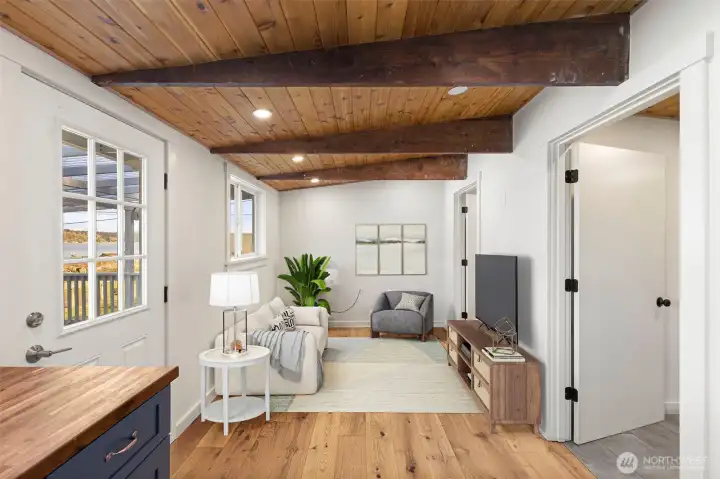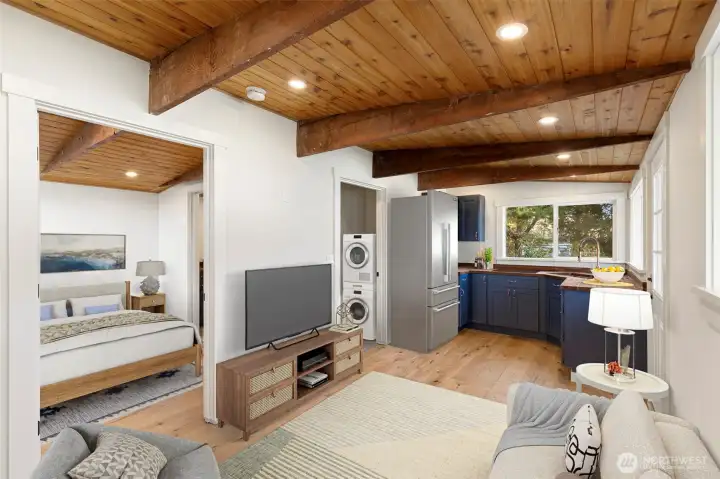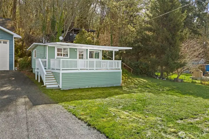 Discover the perfect blend of modern updates and timeless waterfront charm in this beautifully remodeled beach cabin, featuring 25 feet of private shoreline and valuable tideland rights. Though compact in size, the thoughtfully designed layout lives larger than expected, offering both comfort and functionality. The open-concept living space flows effortlessly onto a water-facing deck - an ideal setting for entertaining, unwinding, or soaking in breathtaking views. The updated kitchen showcases stylish finishes and contemporary fixtures, while the bathroom has been transformed into a serene, spa-inspired retreat. Additional highlights include a 600 sq ft unfinished basement, offering excellent storage or future potential for expansion, along with direct water access and the rare benefit of tideland rights - enhancing your ability to fully enjoy the waterfront lifestyle, from beachcombing to launching kayaks right from your own property. Whether you're searching for a full-time residence, a peaceful weekend escape, or the perfect vacation getaway, this charming cabin delivers a rare opportunity to create lasting memories in a truly special setting.