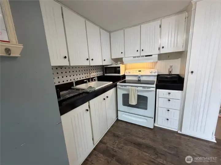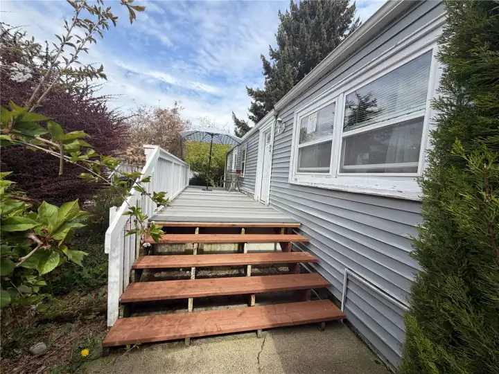 Charming home with numerous upgrades throughout! Drywall has been installed over original wood paneling for a clean, modern feel. Enjoy the beautifully remodeled bathroom featuring a tub/shower combo and extensive tile work. Enjoy cooking in the updated kitchen, complete with appliances. Newer carpet and luxury vinyl plank flooring add comfort and style. Relax in the afternoon sun on the spacious composition deck. Includes a 1-car carport and additional storage area. Located in a quiet 55+ community in a desirable Puyallup location, conveniently nestled between Canyon and Woodland. Park approval required for land lease.