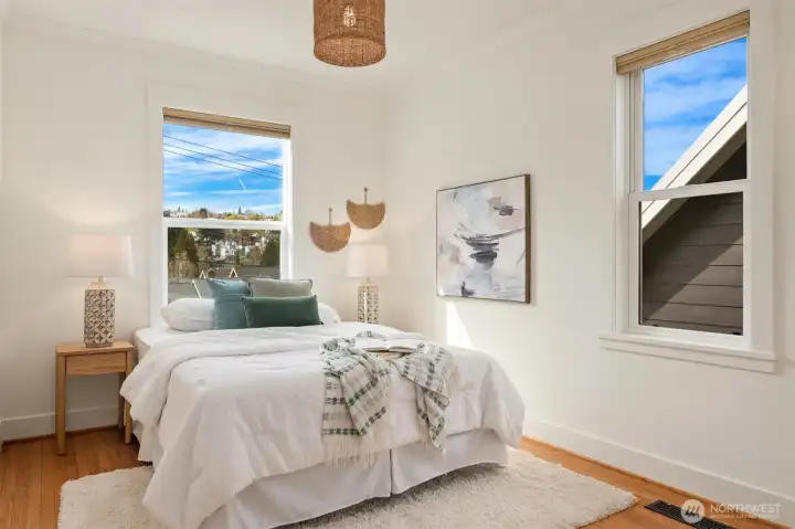 There's a moment walking up to this house where the city just drops away. This 1908 Craftsman sits on a quiet block of 31st Ave in the heart of Madrona, and it's been through a full structural remodel that preserved everything worth keeping and rebuilt everything that needed it. Original hardwood floors, period proportions, that sense of permanence. Behind the walls: updated plumbing and electrical, earthquake retrofit, new double-pane windows, central A/C. The work earned a Built Green 2-Star certification, which is rare for a home from 1908. The kitchen has a skylight, stainless appliances, and real counter space. Both bathrooms have heated tile floors, the kind of detail you notice every single morning. The primary suite overlooks a private back garden patio with a built-in pizza oven, and yes, you will use it on a Tuesday night. The finished basement is a genuine game-changer: media room with gas fireplace, home office, storage. It's where the movie happens, the focused work happens, the gear lives. Two-car detached garage and driveway parking round it out. And then there's Madrona. Walk to Hi Spot Cafe, Red Cow, Bottlehouse, Vendemmia, Madrona Wine Merchants. The lake is minutes away on foot. Downtown is ten minutes by car, Route 2 runs direct, and Capitol Hill Station puts light rail within reach. This is a home with real bones in a neighborhood you never want to leave.