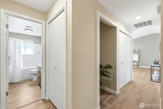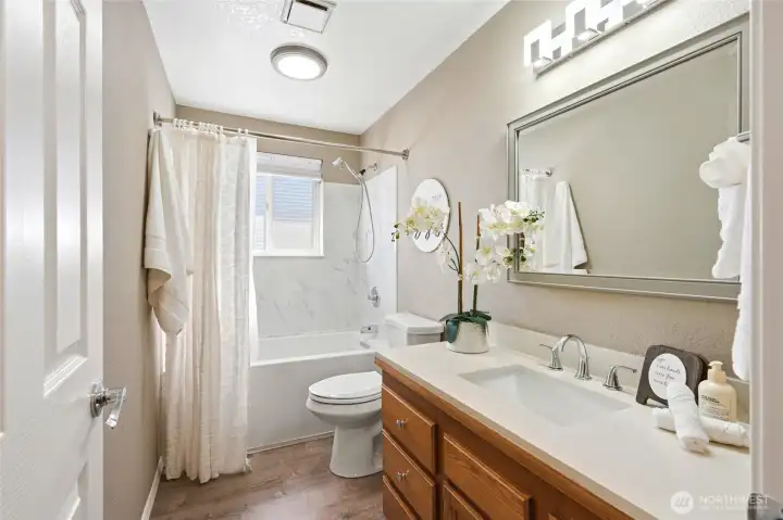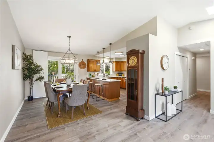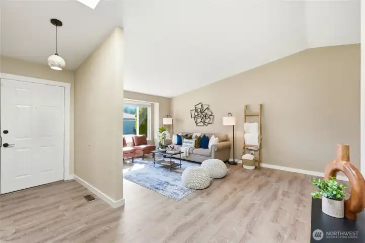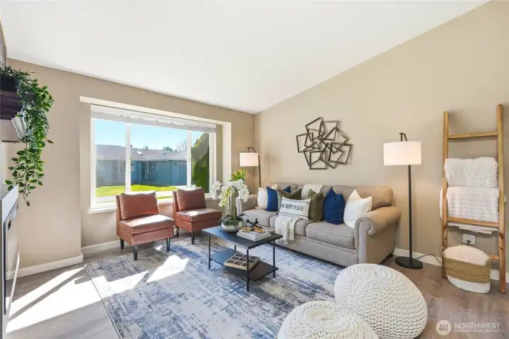 UPDATED and move-in ready, this beautifully maintained END-UNIT home truly has it all! Featuring A/C, updated flooring, fresh interior paint, beautifully renovated bathrooms, and a skylight that fills the home with natural light, this home offers comfort and style with convenient ONE-STORY LIVING. Enjoy three bedrooms, soaring vaulted ceilings, and a bright, open layout designed for everyday living. The primary suite offers a LARGE WALK-IN CLOSET and an updated ensuite bathroom with new flooring, light fixtures, sink, shower with wand, and a bidet. You’ll love the abundance of storage throughout, including multiple hallway closets, a LARGE PANTRY, and garage cabinetry for added organization. Step outside to your PRIVATE BACK DECK surrounded by peaceful woods, where you may even spot deer while enjoying your morning coffee. The TWO-CAR GARAGE and full driveway provide ample parking, and the quiet neighborhood is known for its friendly neighbors and welcoming atmosphere. ALL APPLIANCES STAY, making for an easy transition into your new home. Conveniently located just minutes from College Way shopping, dining, and everyday amenities. The WELL-MANAGED HOA includes water, sewer, garbage, Xfinity/cable TV, general landscaping, and exterior maintenance, along with fantastic community amenities including a playground, picnic area, clubhouse, HEATED INDOOR POOL, and exercise room. COME TOUR THIS ASAP!