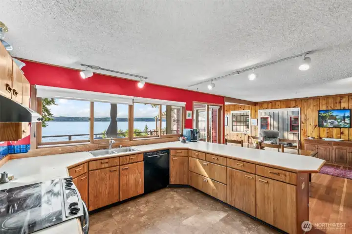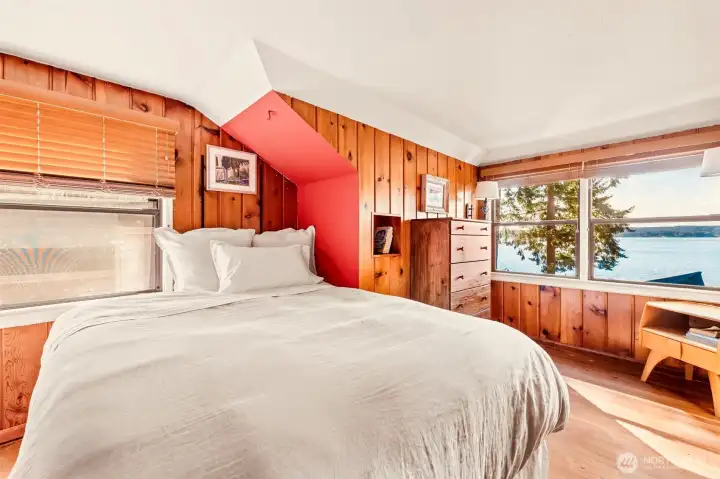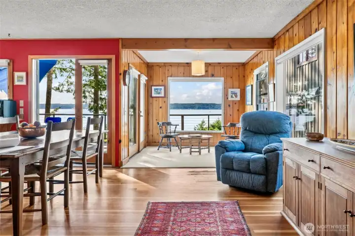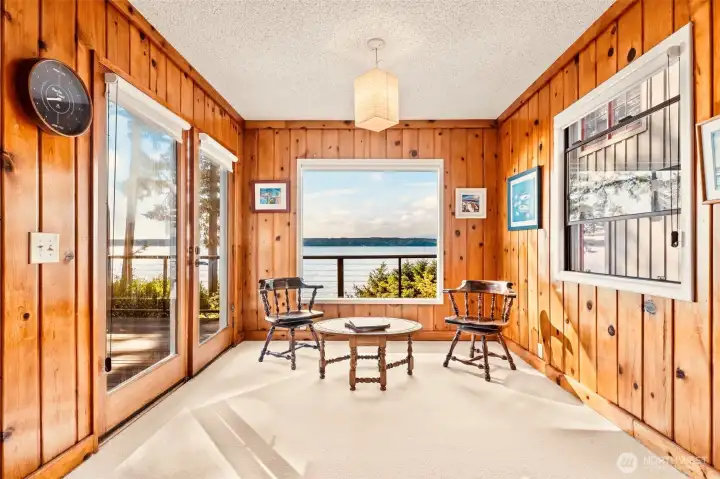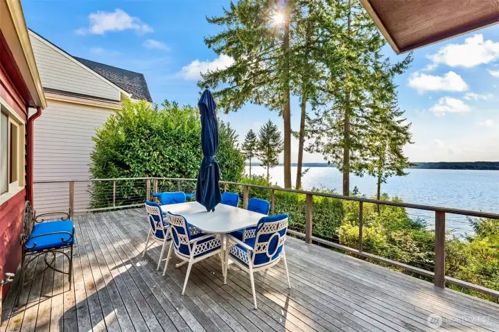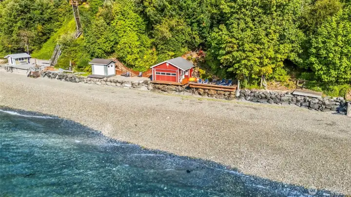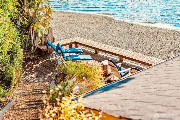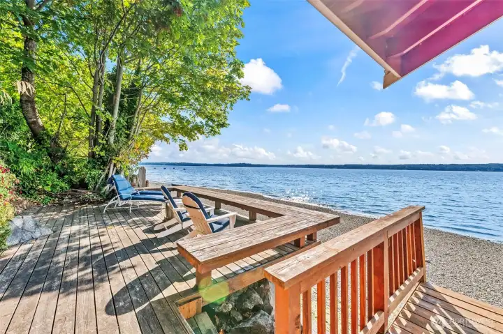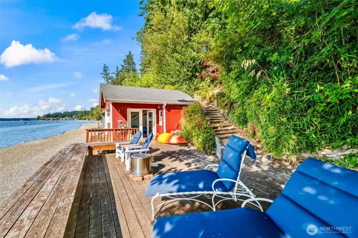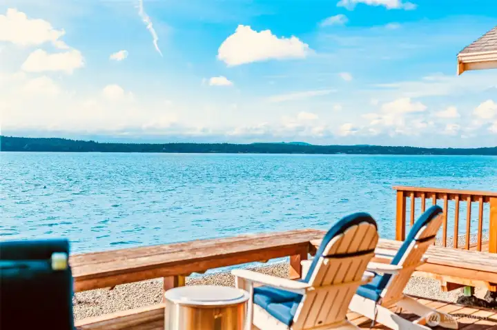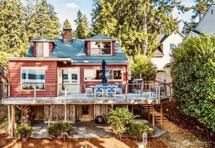 Welcome to waterfront living along iconic Forest Beach Drive. Here, unobstructed western sound and mountain views offer legacy living with the perfect blend of charm and soulful simplicity. Enter via the sunporch and enjoy the open concept, view captivating large kitchen, living areas and ensuite main level primary all which access the wrap around deck. Bedrooms up with 3/4 bath also share the view and the lower level offers an additional bedroom/study with casual kitchen, 3/4 bath, laundry, storage and a private entrance option! Easy access to the beachfront 250 Sq Ft boathouse with bulkhead offers the ultimate lifestyle with seating deck, ample storage with garage style access, sauna and outdoor shower along with 2 mooring buoy options.