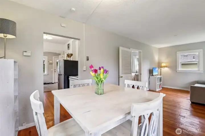 Charming Camas bungalow featuring original wood floors, a detached one-car garage, and a nicely sized lot. This starter home is a great opportunity to own a piece of Camas history. The single-story layout includes two bedrooms, a galley kitchen, and flexible space for a formal dining room, mudroom, or home office, plus front and back porches. Vinyl windows are already in place, with a roof replaced in 2019 and a gas furnace from 2006. Enjoy a large backyard area perfect for entertaining or relaxing. Located less than one mile from historic downtown Camas, with summer markets, highly rated restaurants, hiking, and more nearby. Award-winning schools and just minutes to the Columbia River for fishing and recreation.