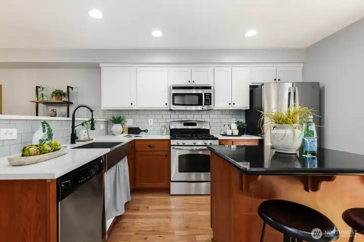 Nestled in the peaceful Sylvan Ridge community, this West Seattle home offers the perfect blend of comfort and convenience. Step inside to a bright and airy main level where a stunning double-sided gas fireplace creates a seamless connection between the living and dining areas—ideal for both everyday living and entertaining. The updated kitchen features quartz countertops, all stainless steel appliances, and easy access to a private balcony—perfect for enjoying your morning coffee or unwinding at the end of the day. Upstairs, the spacious primary suite includes an ensuite bath, along with an additional bedroom, full bath, and a versatile bonus space ready to suit your needs. The lower level offers a tandem 2-car garage plus extra flex space for storage, hobbies, or a home gym. Mini split provides efficient year-round comfort. Conveniently located just minutes from shopping, dining, the West Seattle Junction, Alki Beach, and downtown Seattle—this inviting home is ready for its next chapter!