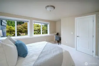 This beautifully updated Mercer Island home blends timeless design with modern comfort. This exquisite home, nestled among the trees, features 10’ ceilings, rich hardwoods, skylights, and floor-to-ceiling windows filling the main level with natural light, framing views of the city, mountains & seasonal Lake Washington glimpses. A dual-sided fireplace connects formal and casual living rooms, while box-beam ceilings add architectural character. The dining room is built for entertaining with a full-wall hutch, butler’s pantry & deck access. The chef’s kitchen features quartz countertops, premium stainless appliances, paired with a large walk-in pantry. The walk-out veranda creates the perfect space for entertaining. The primary suite offers 2 custom walk-in closets & a recently remodeled spa-like bathroom with soaking tub, double vanity, and shower. A sixth main-floor bedroom provides flexibility for an office or guest space. The lower level includes a media room with surround sound, wine storage, 4 additional bedrooms with custom closets, and a spacious laundry room with built-in cabinetry. Attached garage with built-in shelving offers excellent storage & organization. The spacious lot is surrounded by mature landscaping and a secluded backyard. Enjoy easy access to nearby beaches, Pioneer Park, Mercer Island Plaza, top-rated schools, and the island’s sought-after slower pace.