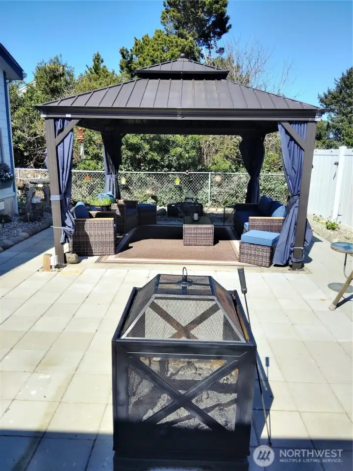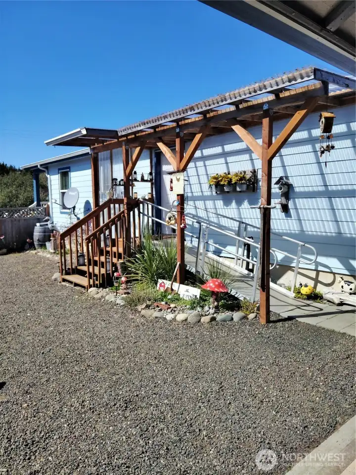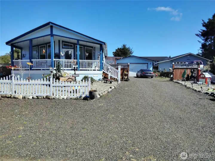 This home is spectacular! Beautiful and well-maintained with many updates. Vaulted ceiling w/elegant beveled finish. New countertops and custom cabinet wrapped in decorative corrugated metal. New wood flooring in bedrooms. Gorgeous barn door and new light fixtures adds to the tasteful decor. There's a pantry too. Kitchen includes new oven/range, new fridge & new microwave. All appliances stay. HVAC furnace for both heating & cooling. Master bedroom has 2 walk-in closets w/ double sinks & a soaking tub. Home has an ADT fully wired security system - just needs to be updated & activated. Outside - the gazebo & fire-pit stays. There's a wheelchair ramp & a 50-AMP Electrical RV Plug-in. Huge 32' x 24' garage (768 sq ft) with plenty of room for a workshop. Comes w/ Lifetime Membership to Community Rec Center - no dues! Front deck is perfect for sunsets, or relax and enjoy the Gazebo and Firepit in back! Or walk to the Ocean Beach - it's less than a short block away! This home is a must see - the Ocean is Calling You~!