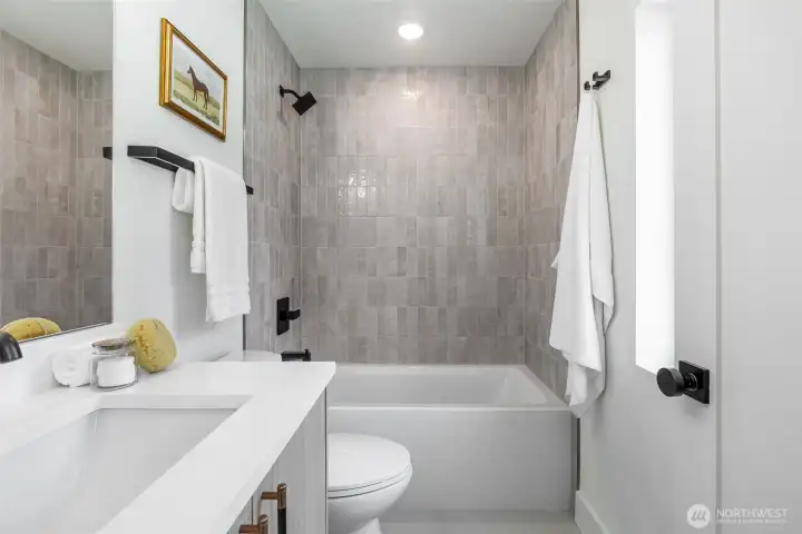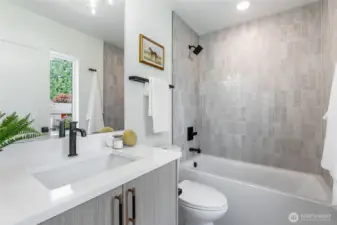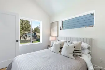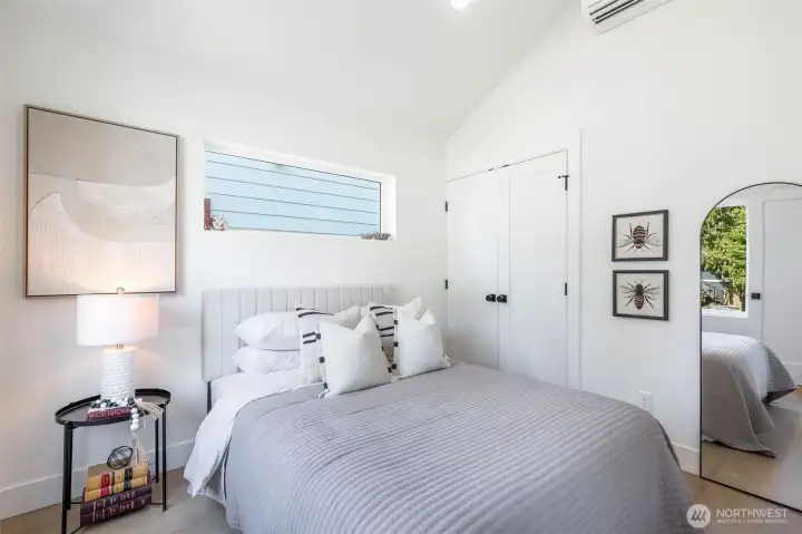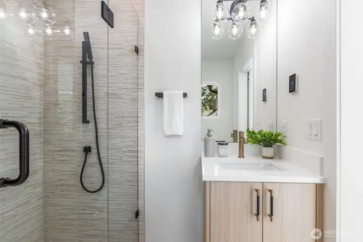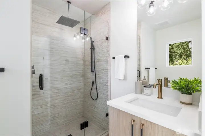 Welcome to this luxury modern 4 star built green 2B2.5B home built by premier builder Seattle Modern Construction. High end design and finishes define this home throughout: Custom kitchen cabinetry w/ soft close cabinets, black SS appliances, luxury vinyl with no carpet, cassette style minisplit, for heating/cooling. Light, bright open floor plan with vaulted ceilings and primary suite featuring heated floors, and built-in closets. Lower level features a media/flex room and another bedroom. One car carport and additional driveway space. Located in the heart of Victory Heights, easy commute to SLU/Bellevue, Greenlake, Ravenna and all that Seattle has to offer. Welcome Home!