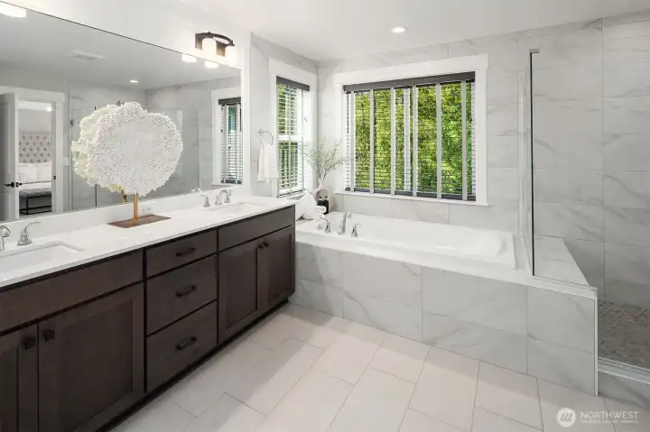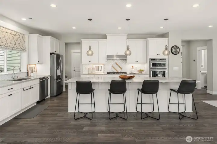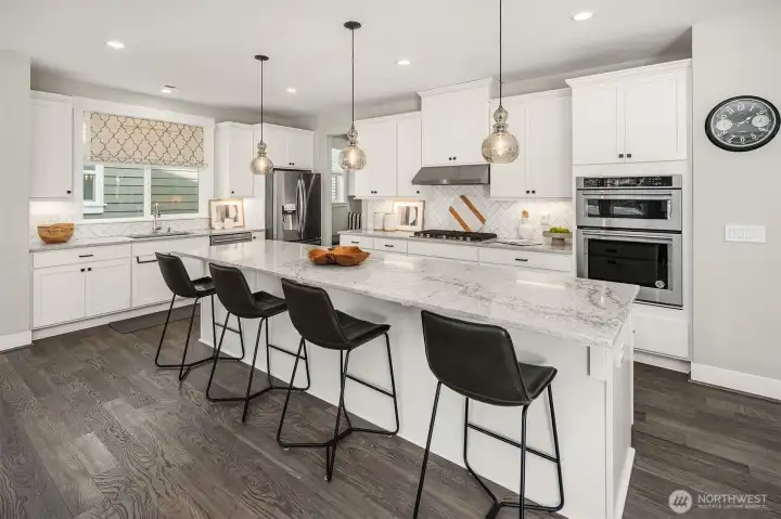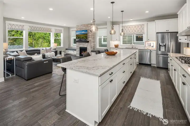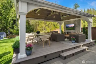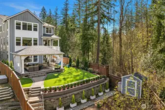 Welcome to an exceptional Canterbury Park resale in Sammamish, this residence offers a two-story layout with a finished basement, situated on a private end corner lot. The chef’s kitchen features a large island, SS appliances & direct access to the deck with two heaters and spiral stairs to the backyard. Upstairs, there are four bedrooms, a den, utility room and a flex area. The primary suite faces to a green belt, spacious with luxurious primary bathroom a soaking tub, double vanities & a walk-in closet. The lower level includes a private suite with its own living area, recreation room, and a 3/4 bath, as well as access to a beautifully landscaped yard, showcasing over $200K in improvements. A fully permitted outdoor kitchen a gas barbeque, granite countertops, sink, and plenty of cabinetry. The covered gazebo is equipped with two wall-mounted electric heaters, smart lighting, integrated speakers, TV mount, and a electric fireplace. Additional features include EV charging, Overhang storage in the garage, AC, custom blinds, artificial turf, a generator hookup and a sprinklers system. The community provides parks and trails, located min. from shopping center belongs to LWSD.