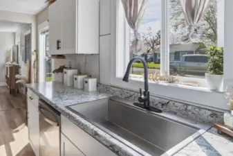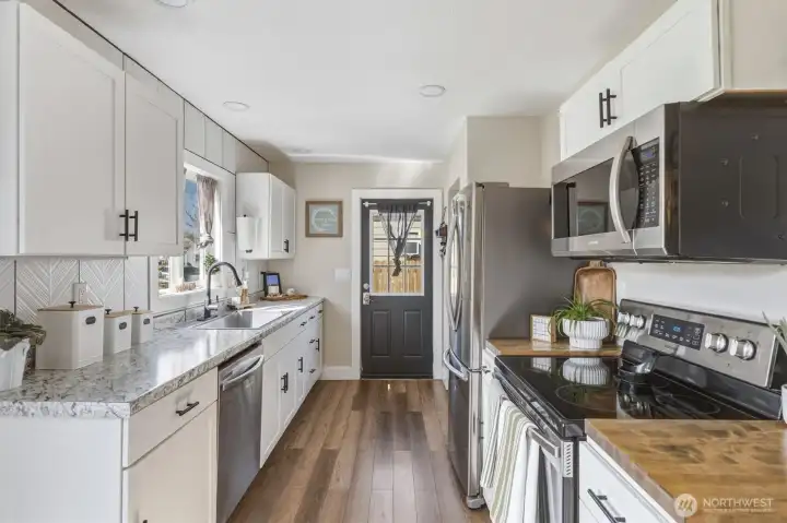 This home has been totally updated! Spotless, move in ready. Newer roof, electrical, stainless appliances, sink, countertop and flooring. Freshly painted interior. New covered concrete patio. Room in back for toy parking. Oversized garage with LED lighting, heaters and loft area. Bring your fussiest buyer. Walking distance to lake, schools and other amenities.