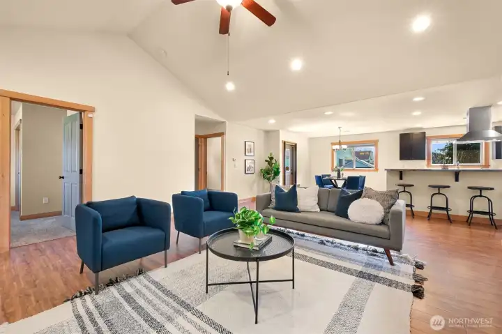 Imagine waking up to sunshine and birdsong as you sip your morning coffee. This remarkably maintained rambler is situated on a quiet cul-de-sac. Inside, the open floor plan features a thoughtful split-bedroom layout, with the primary suite on one side and 3 additional bedrooms/office on the other. Stay comfortable in any season with a gas fireplace for the winter and central air conditioning for the summer. The kitchen overlooks the backyard and includes stainless steel appliances, a walk-in pantry, and bar top seating. The primary bedroom offers a walk-in closet and an ensuite bath with dual sinks and a walk-in shower. The guest bathroom is perfectly positioned between the secondary bedrooms with a deep soaking tub. Step outside to a sun drenched backyard designed for both relaxing and growing. Established flower and garden beds with asparagus, rhubarb, onions, strawberries, blueberries and an apple tree. Spend your evenings on the back patio watching the sun set and views of Sumas Mountain. This home is perfect for comfort and connection right in the heart of Nooksack Valley.
