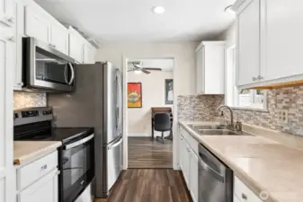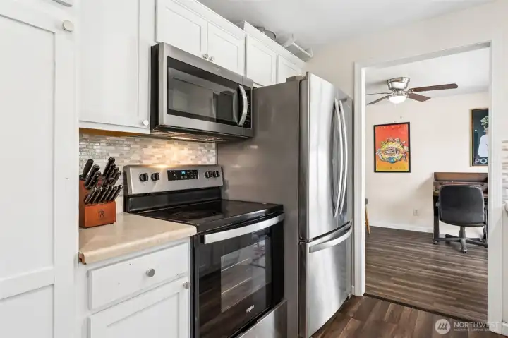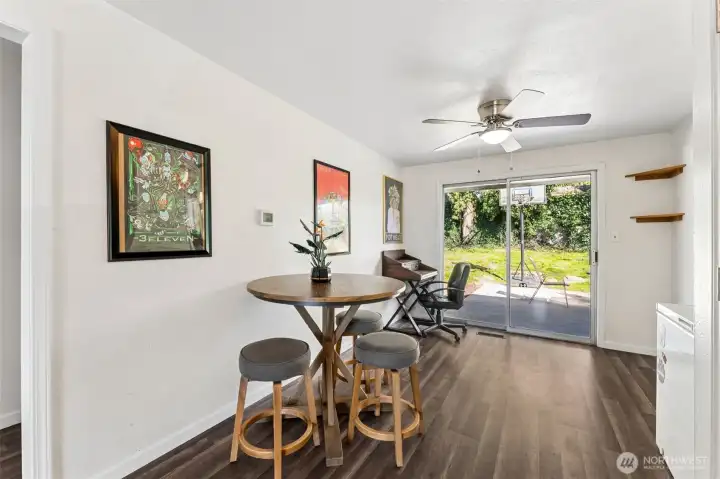 Charming 3 bedroom home with almost 1300 square feet! This home has had many upgrades including a newer furnace in 2025, roof in 2016, electric panel in 2016, and newer windows. You'll love the wood burning fireplace in the living room and the large patio for entertaining in the fully fenced backyard. Newer vinyl plank flooring with hardwood underneath if you ever wanted hardwood again. Hardwood floors in the bedrooms on the main level and an updated bathroom. Recently painted wood cabinets and backsplash installed in the kitchen area along with newer appliances that are included with the sale. There is a bathroom off of the laundry room area additionally and a spacious bedroom located upstairs. Natural gas is also available. Relax on the covered front porch or garden in the backyard. Only 10-15 minutes to JBLM, 40 minutes to Seattle, and 30 minutes to Olympia. Don't miss this one!