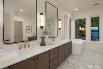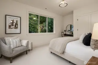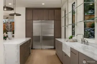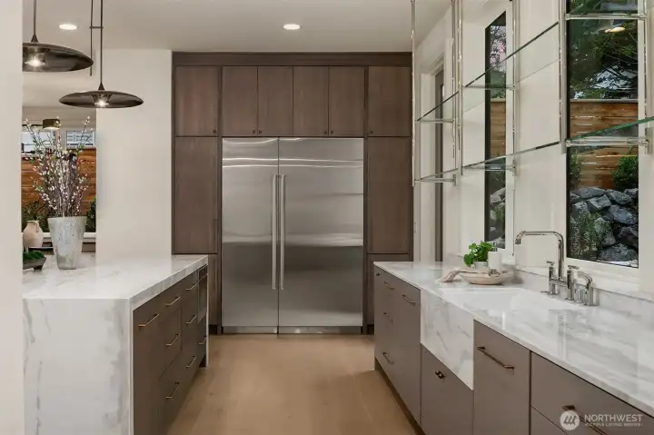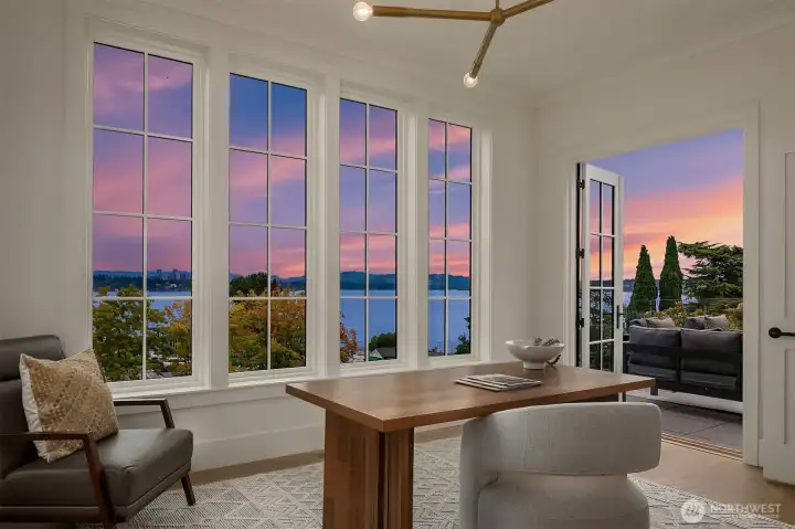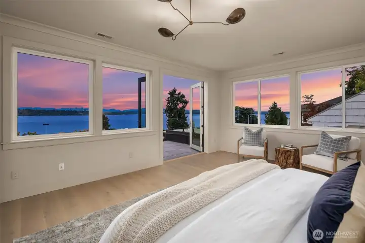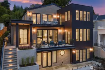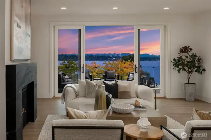 Introducing a striking new cedar-clad residence with sweeping views of Lake Washington, the Cascades, and Mt. Rainier. Designed to celebrate its extraordinary setting, the home’s view-centric great room anchors the main living spaces, while four private patios create seamless indoor-outdoor flow. The chef’s kitchen is both refined and functional, appointed with a dramatic marble waterfall island, Sub-Zero refrigerator, Wolf range, and sleek glass shelving. The primary suite is a true retreat, featuring a private view deck, adjacent office, stunning lake and mountain views, soaking tub, double sinks, generous marble finishes, and a walk-in closet. Two private offices capture the inspiring scenery, and a full elevator offers effortless access to every level. Year-round entertaining comes naturally with a covered outdoor kitchen complete with fireplace, BBQ, refrigerator drawers, and heat lamps. Offering five bedrooms, 4.5 baths, two offices, media room, wine cellar, designer lighting, a Costco room with two fridge/freezers and extensive storage, plus attached 2-car and separate 1-car garages.
